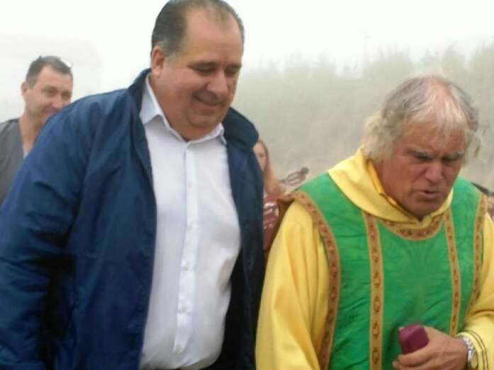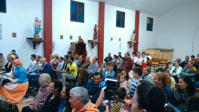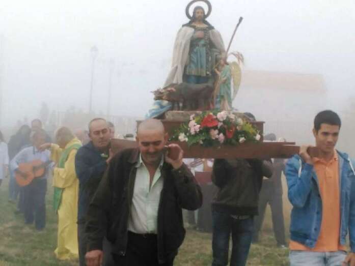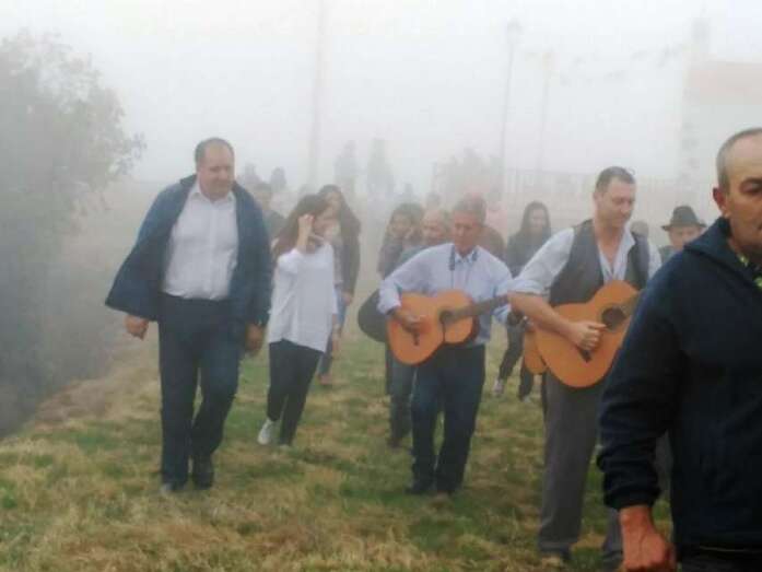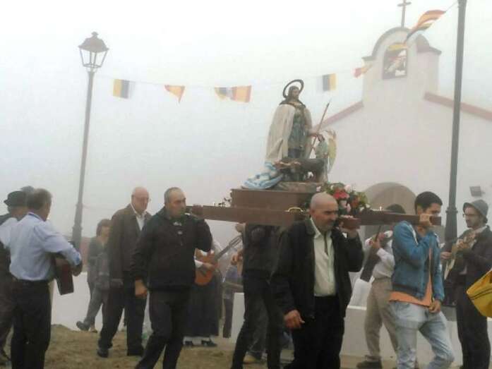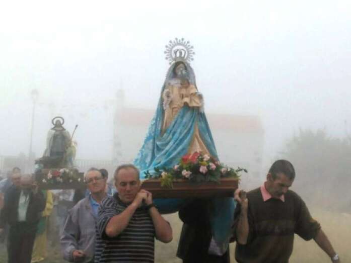 El acto religioso, que estuvo presidido por el párroco de la zona, el conocido Padre Báez, se desarrolló entre nieblas con el acompañamiento de una formación musical y de un nutrido grupo de vecinos, entre los que se encontraba el concejal centrista Juan Martel.