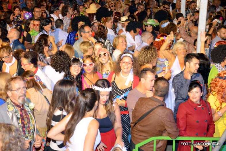 A pesar de la lluvia la Fiesta Guateque de  los años 60 fue anoche un éxito en Valsequillo. Pantalones de campana, flores, maxi-gafas y vestidos típicos de la época inundaron la Plaza de Tifaritti, en uno de los actos más emblemáticos de las Fiestas y Feria de San Miguel.