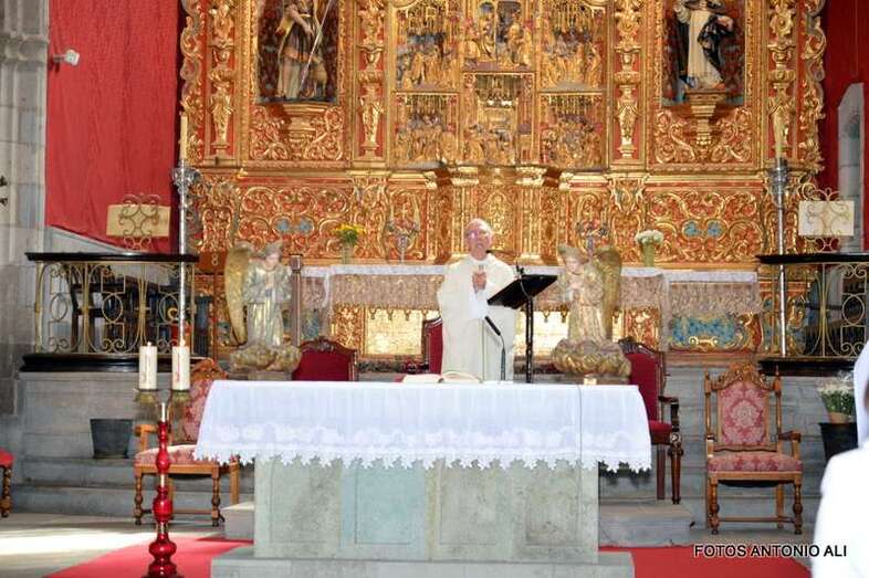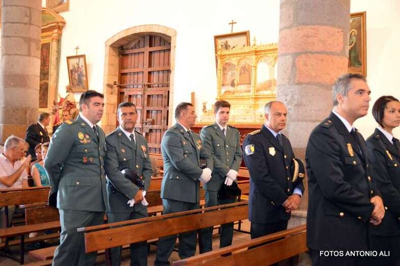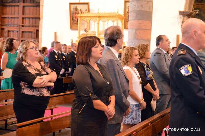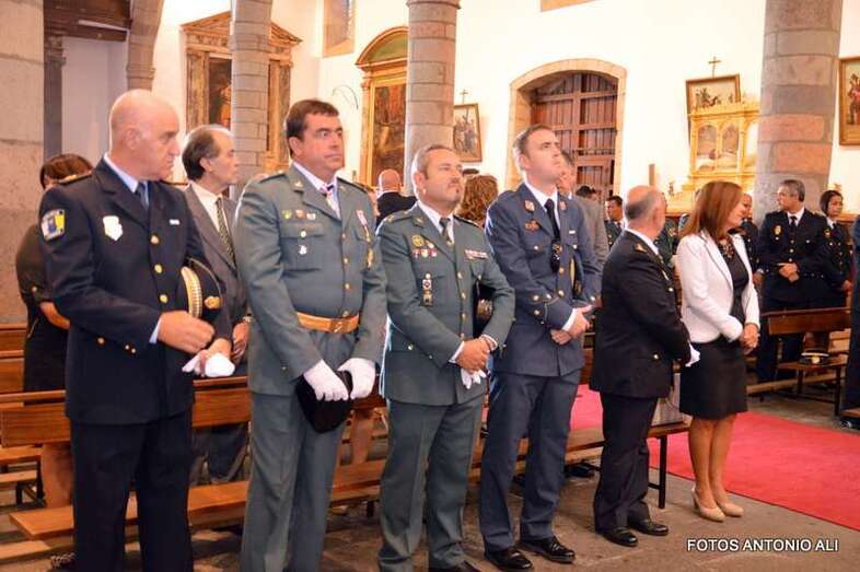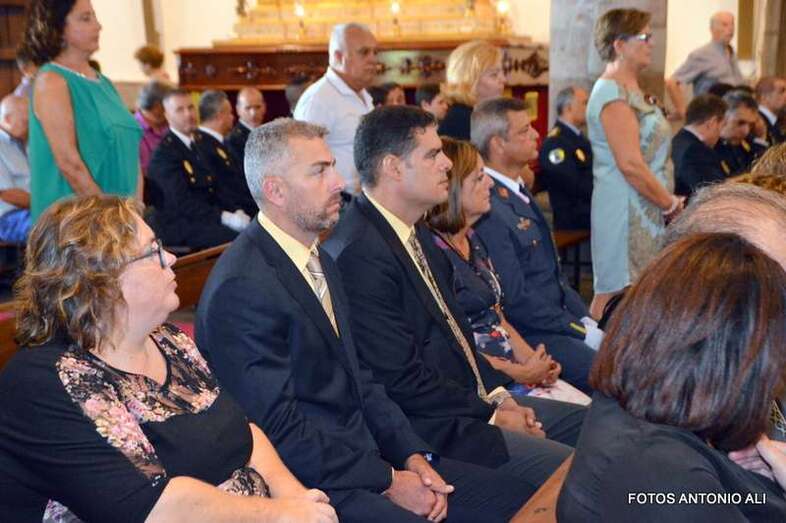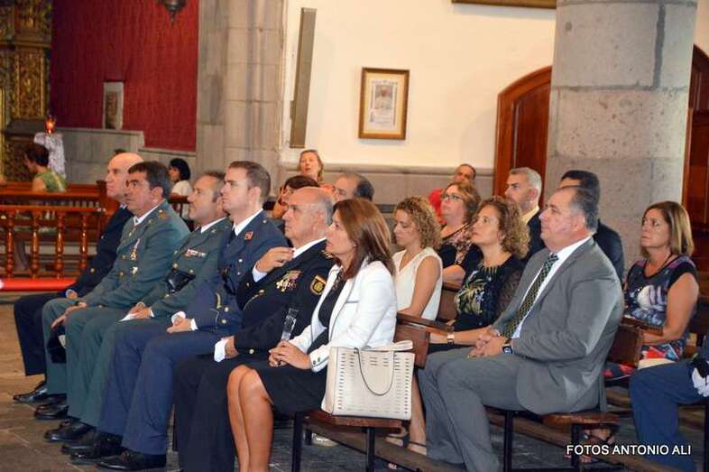 La celebración se inició a las 11.30 horas con una misa en la Basílica de San Juan Bautista, oficiada por el párroco José María Cabrera y amenizada por la Parranda del Vino, a la que asistió una representación de la Corporación municipal, encabezada por la alcaldesa de Telde, mandos militares de la Base Aérea de Gando, una comitiva de la Policía Local de Telde entre la que se encontraba el jefe del cuerpo, Félix Ramos ; y una representación de la Guardia Civil.