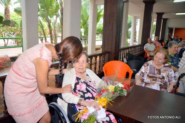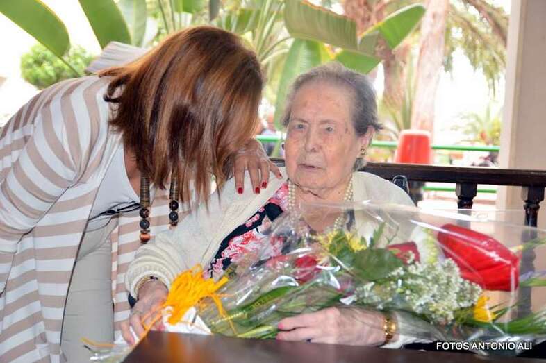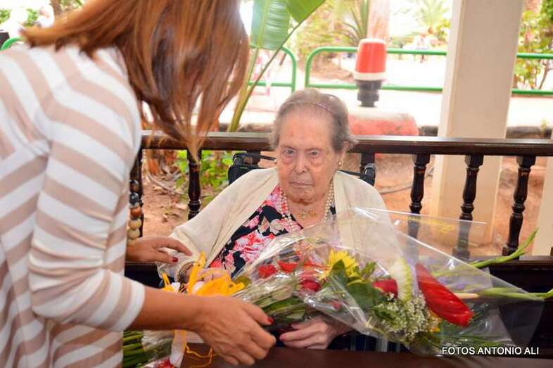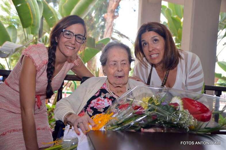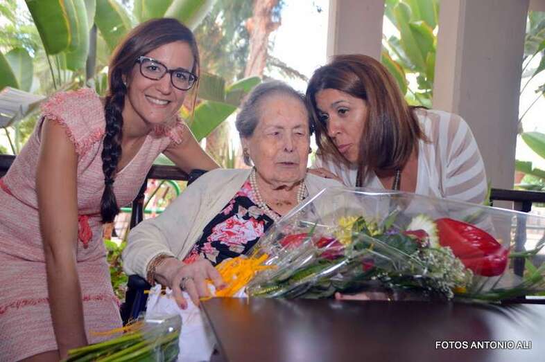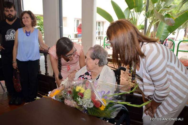 La alcaldesa, Carmen Hernández, y la concejala de Servicios Sociales, Natalia Santana, visitaron a esta centenaria vecina de la capital grancanaria, pero que desde hace ya unos años vive en la residencia de Taliarte. Ambas mandatarias sorprendieron a Joaquina Agustina con un caluroso homenaje en el que le entregaron un bello ramo de flores, y aprovecharon para escuchar la voz de la sabiduría conociendo de primera mano algunas de las experiencias más significativas que han marcado su trayectoria vital durante el siglo que ha vivido.