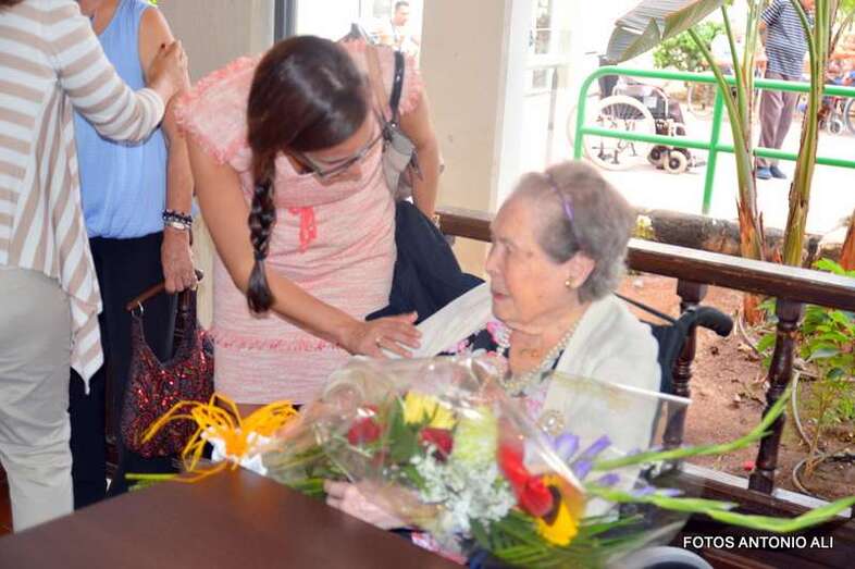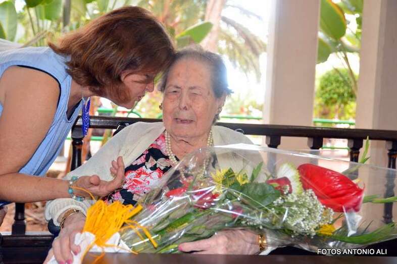 Carmen Hernández destacó el buen estado de salud de Joaquina Agustina Gómez, de quien intentó descubrir sin éxito el secreto para alcanzar una vida tan longeva. Según le explicó ella misma, a sus casi 103 años y todavía soltera, juega habitualmente al bingo con 5 cartones y gana a sus compañeros de residencia jugando al dominó.