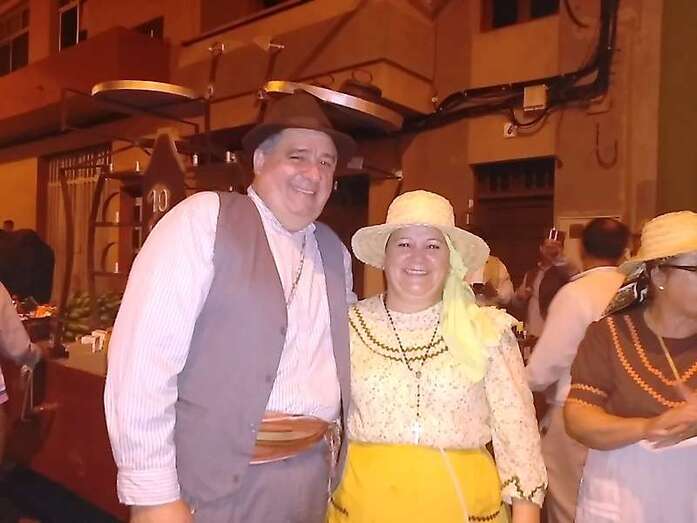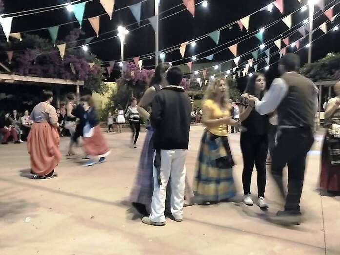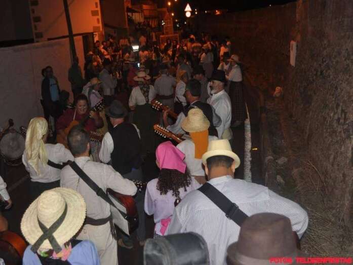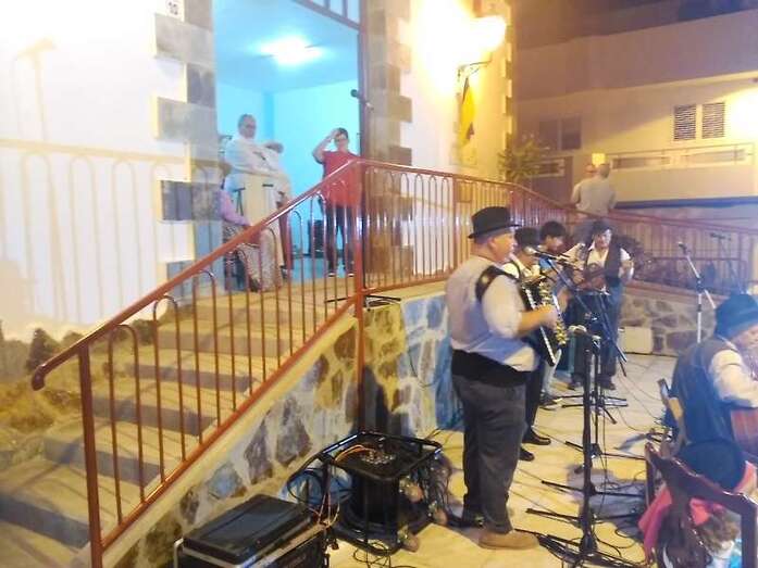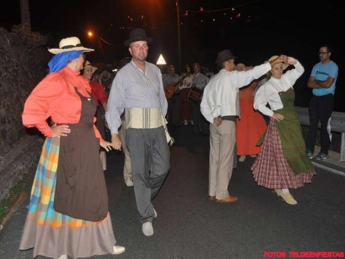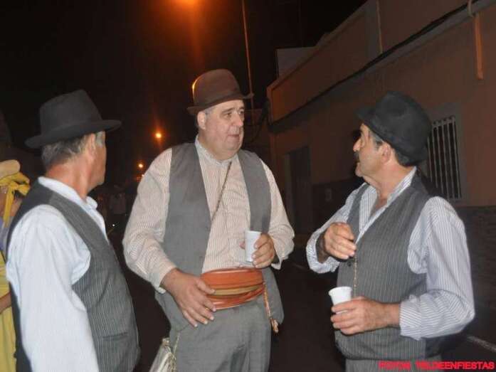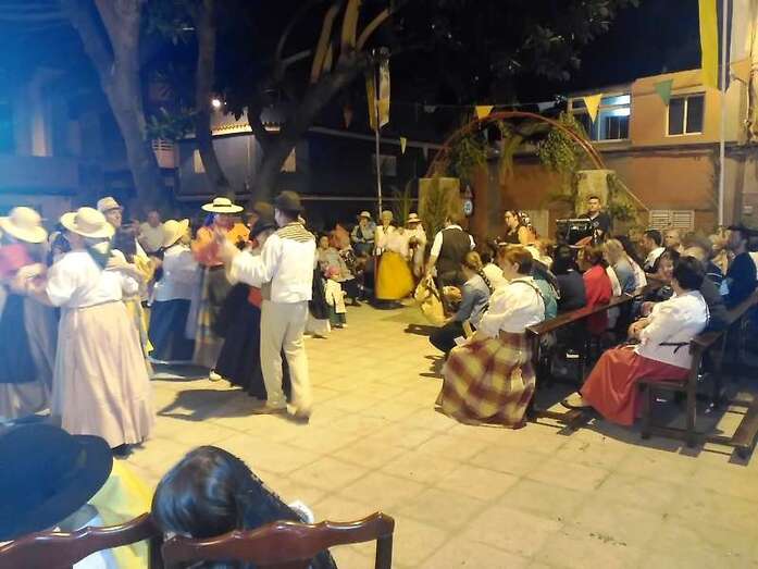 La alegre comitiva popular recorrió el trayecto hasta la plaza del Valle de los Nueve Alto, donde tendría lugar la ofrenda y luego un baile de cuerdas. El concejal de Festejos, Juan Martel, quiso estar al lado de los vecinos y compartió la romería y la jarana posterior.