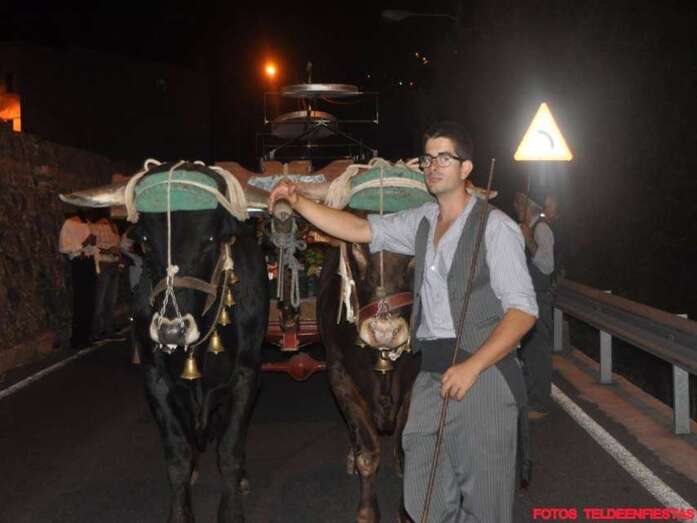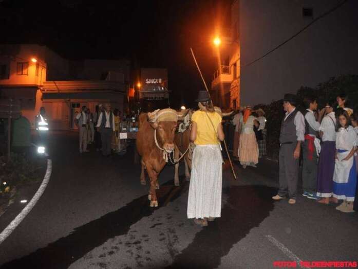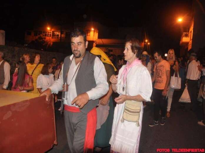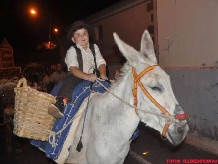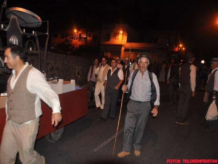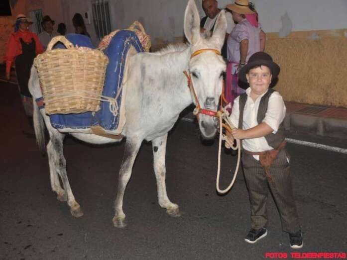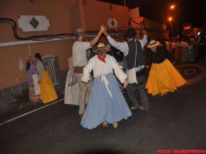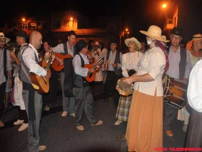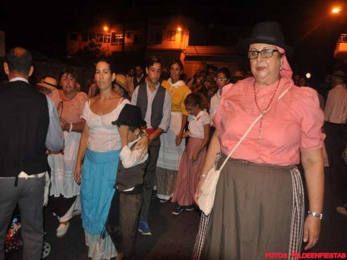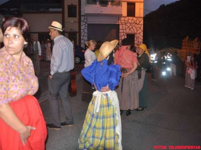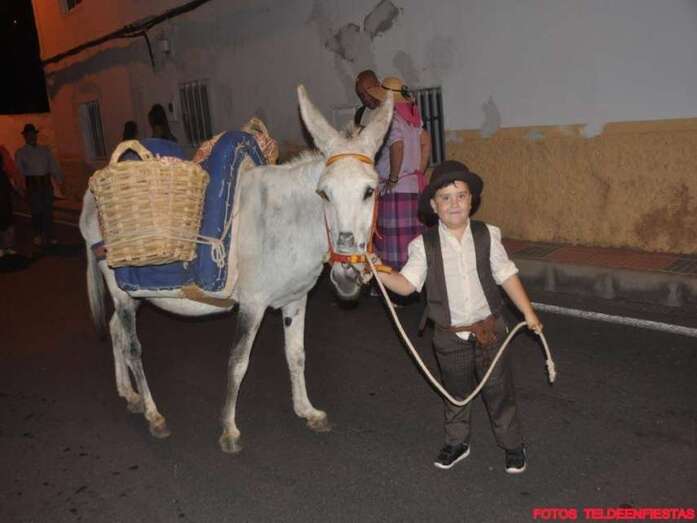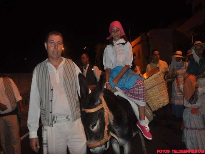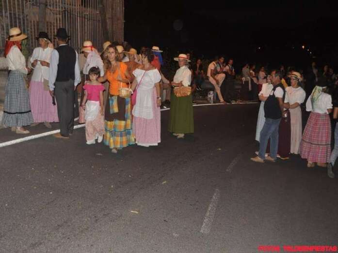 Telde.- El Valle de los Nueve, que este lunes celebra el día grande de sus fiestas en honor de la Virgen del Pilar, se vistió ayer de romeros para ofrendar a su patrona. Al filo de la medianoche un espectáculo pirotécnico llenó el cielo del barrio de voladores multicolores.