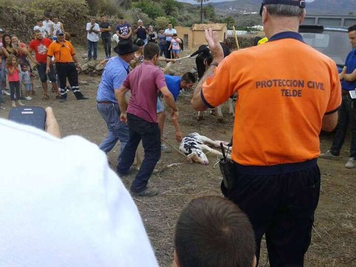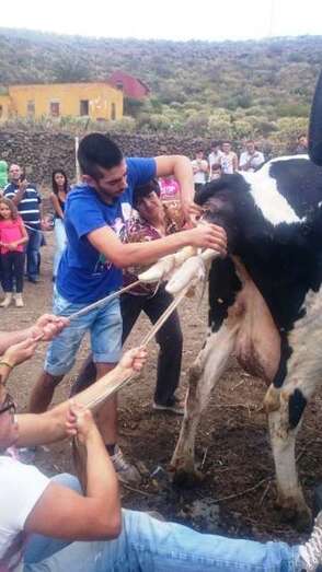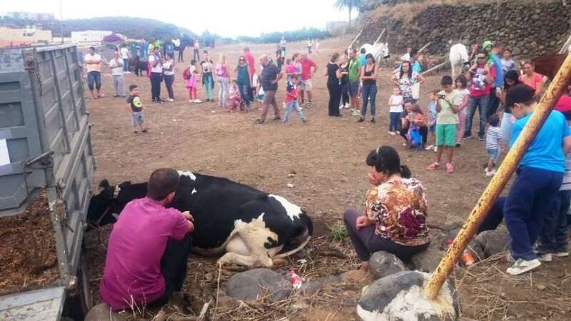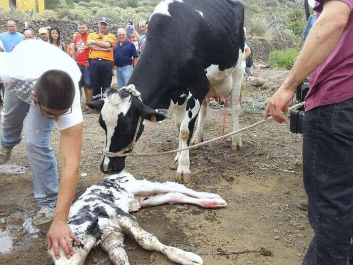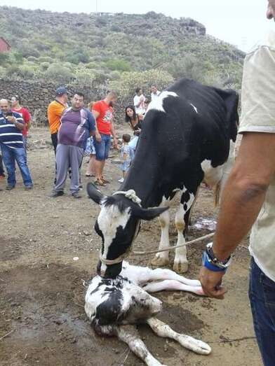 Telde.- La feria de ganado que se celebró este domingo en el Valle de los Nueve, con motivo de sus fiestas patronales en honor de la Virgen del Pilar, tuvo un episodio que despertó una gran expectación entre el público asistente. Una vaca que había sido llevada a la exhibición se puso de parto y dio a luz un becerro que vino al mundo en perfecto estado de salud.