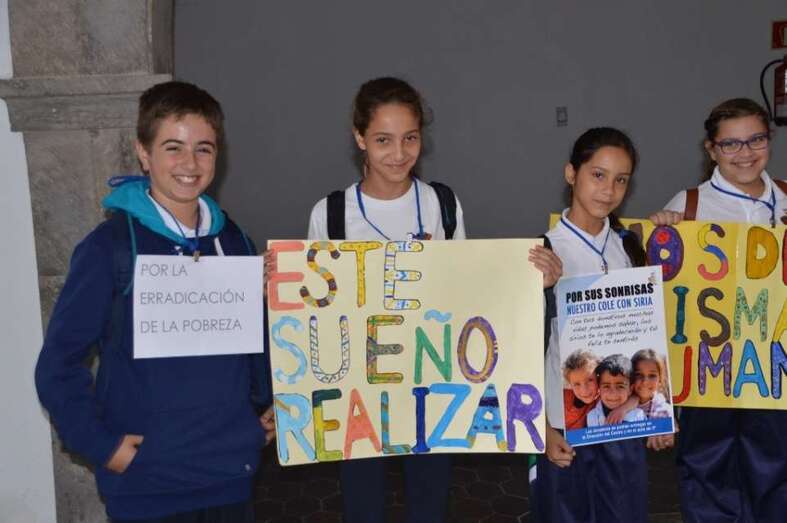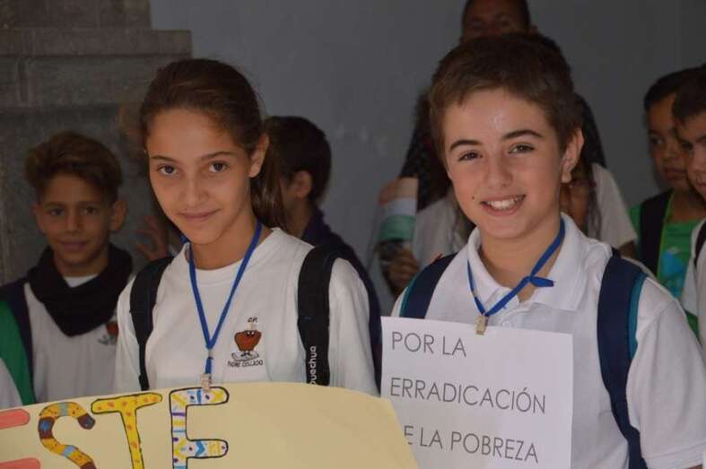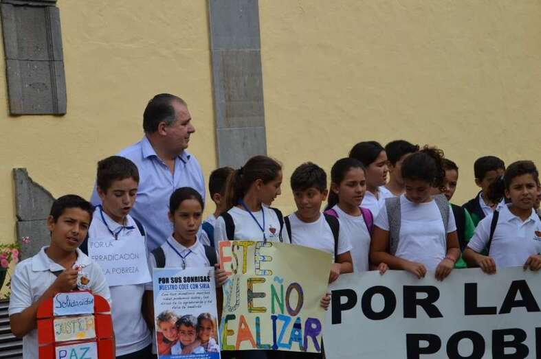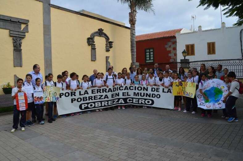Los chiquillos de 5º y 6º de Primaria del centro educativo de la zona cumbrera de Telde despertaron el cariño y la simpatía de los asistentes al acto. Con pancartas volvieron a reclamar la llegada de valores tan añorados como la paz, la igualdad, la justicia o la solidaridad. Entre otras cosas, se procedió a la lectura de un manifiesto en el que se fue muy crítico con la denominada declaración del milenio de la Organización de las Naciones Unidas (ONU), que el 8 de septiembre de 2000, en Nueva York, aventuró su deseo de poner fin a la lacra de la pobreza en 15 años, cosa que no se ha conseguido.