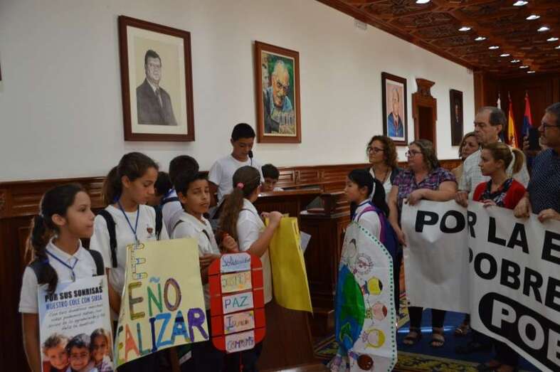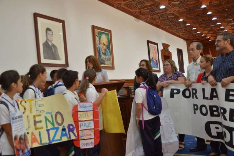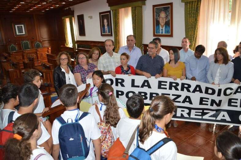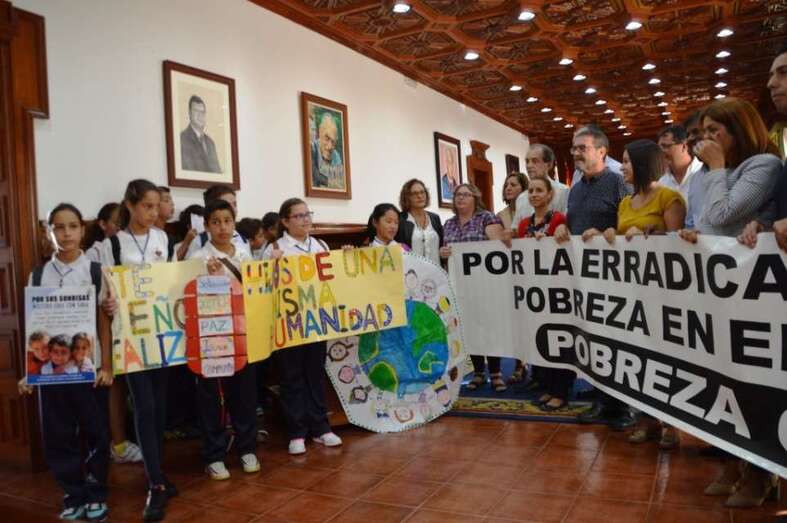 Telde.- Con sencillez, pero con contundencia. Así ha celebrado hoy Telde el Día Internacional a favor de la erradicación de la pobreza. Un sencillo acto desarrollado a caballo entre el salón de plenos del Ayuntamiento y el Rincón Plácido Fleitas ha sido más que suficiente para patentizar el rechazo a esta lacra que se sigue sufriendo más de medio planeta. Unos treinta alumnos del CEIP Padre Collado, de Lomo Magullo, protagonizaron este año el gesto.