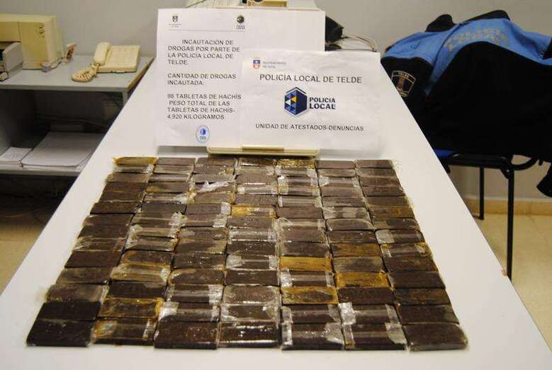 Telde.- La Policía Local de Telde intervino cerca de 5 kilos de hachís en el interior del vehículo que la pasada semana se accidentó en la zona de La Mareta.