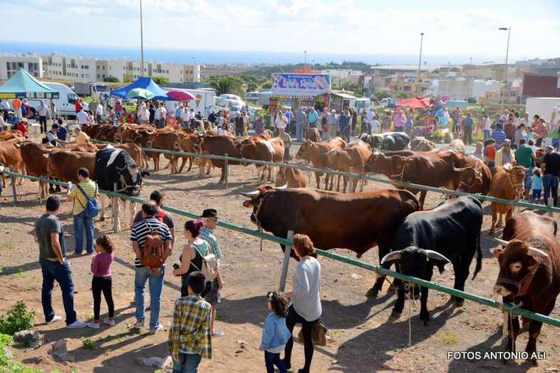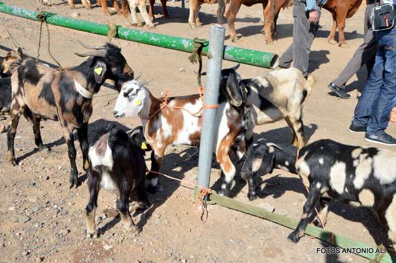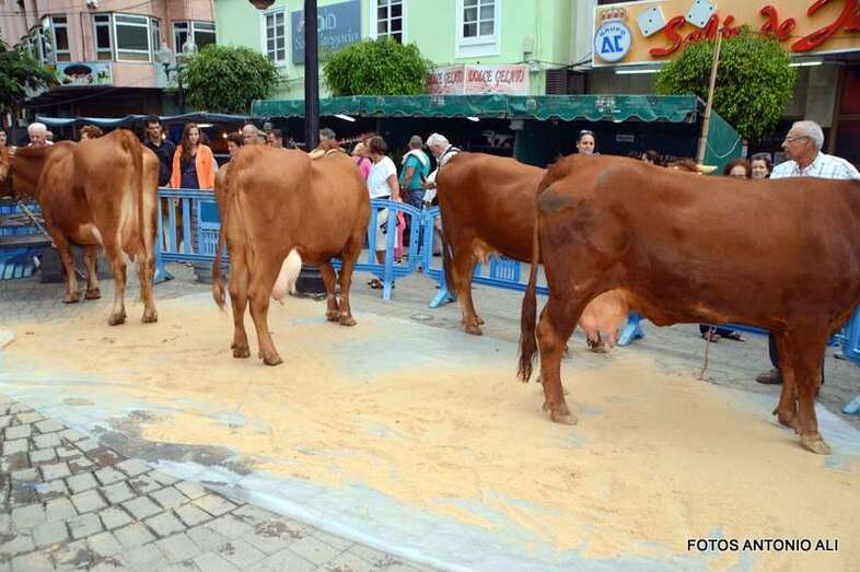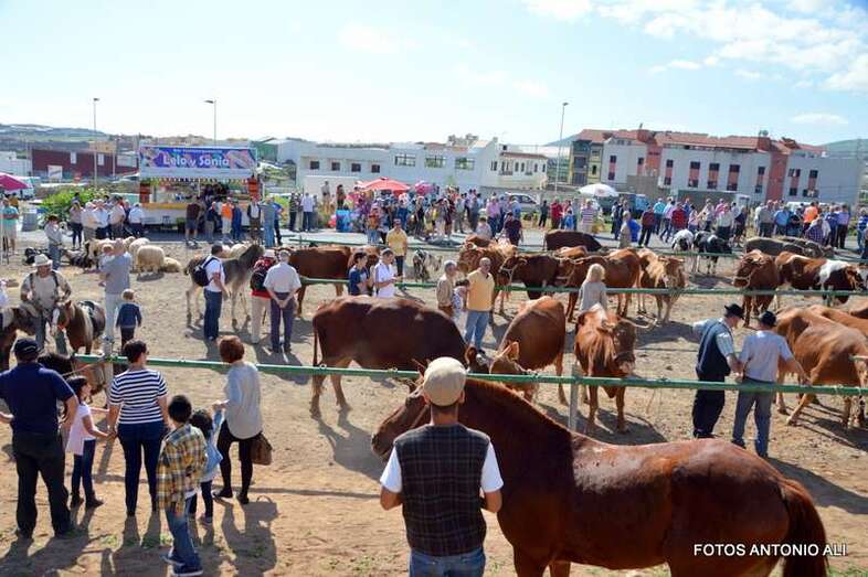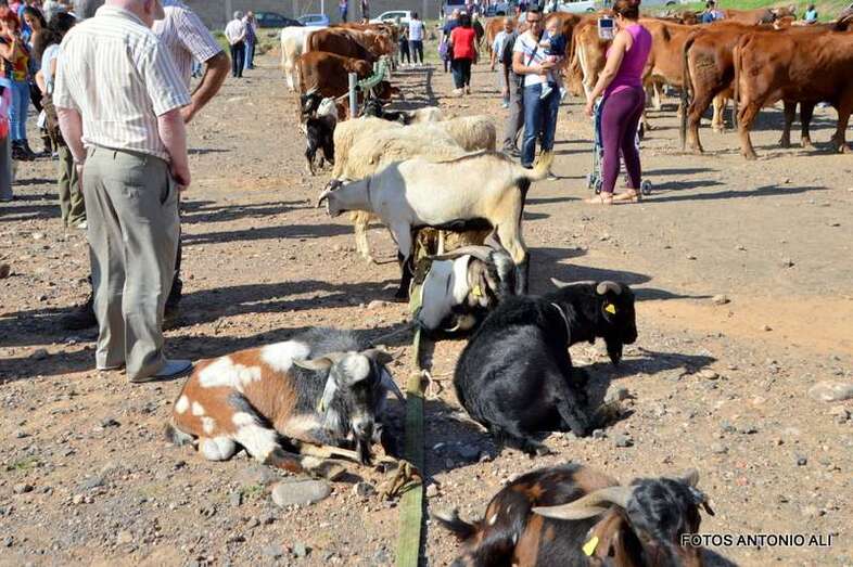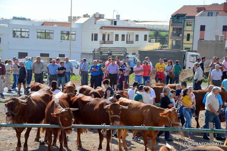 Por otro lado, en una explanada próxima a la rambla de Picachos, una amplia muestra de ganado fue otro de los atractivos de esta jornada matutina. La feria daba acogida a unos 100 animales, esencialmente vacas, toros y cabras. El ganado desfilaría a las 13.30 horas ante la imagen del santo en la plaza de Los Llanos, donde las autoridades entregarían un detalle a los propietarios de los animales galardonados.