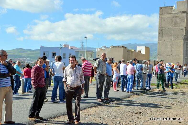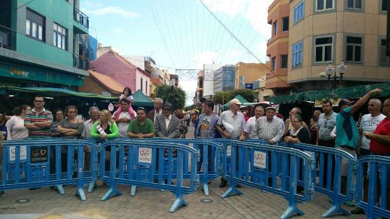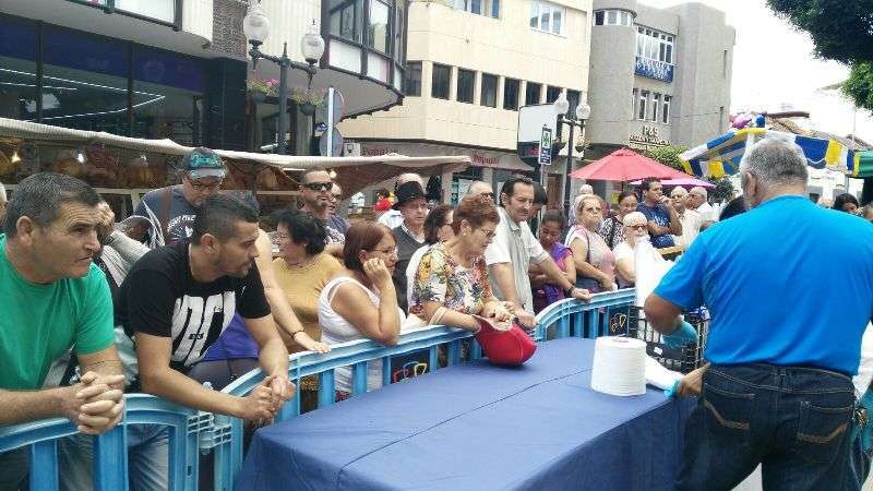 Cientos de personas se arremolinaron en cuestión de minutos en torno al espacio acotado por el Ayuntamiento de Telde para la ordeñada de las vacas y no perderse la posibilidad de saborear leche fresca con gofio.