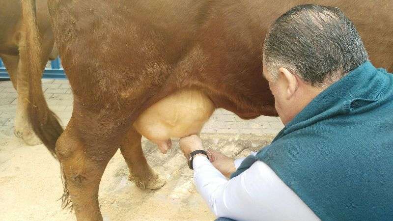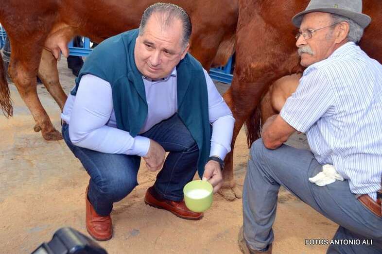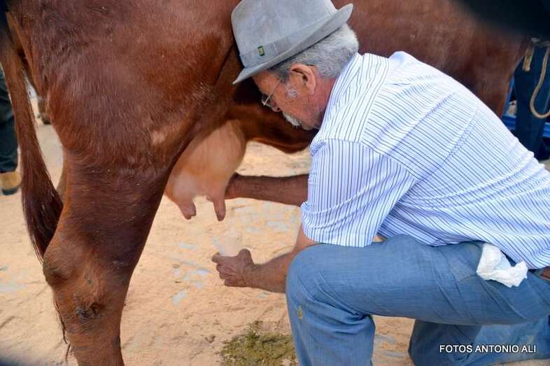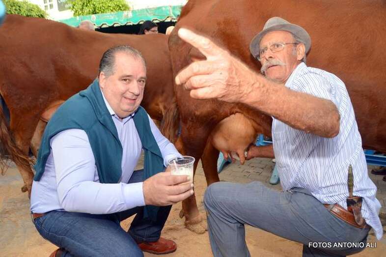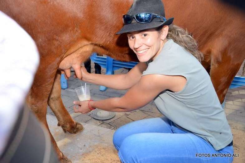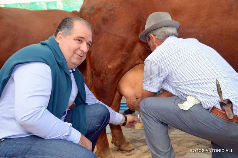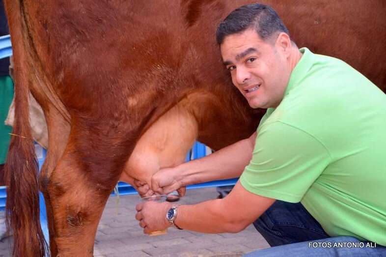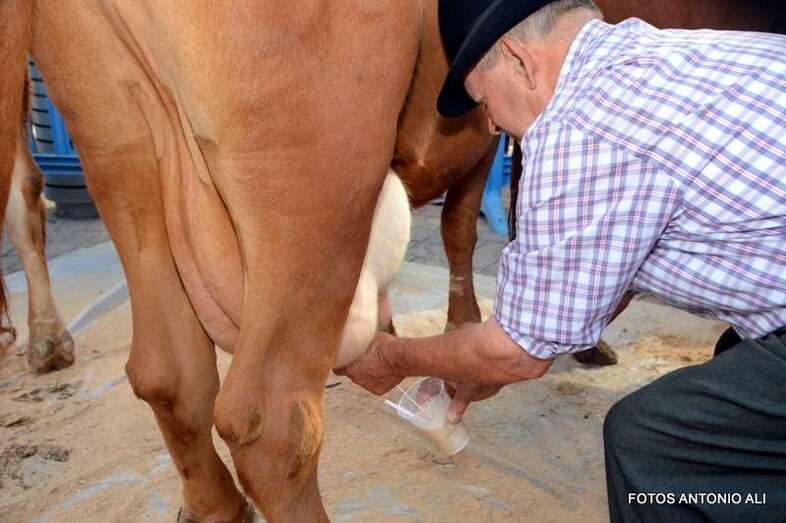 La leche se agotó a los pocos minutos de salir de la ubre de los cuatro animales, ordeñados por varios ganaderos. Los concejales Juan Martel, de Festejos, y Diego Ojeda, de Deportes, hicieron también sus pinitos como ordeñadores