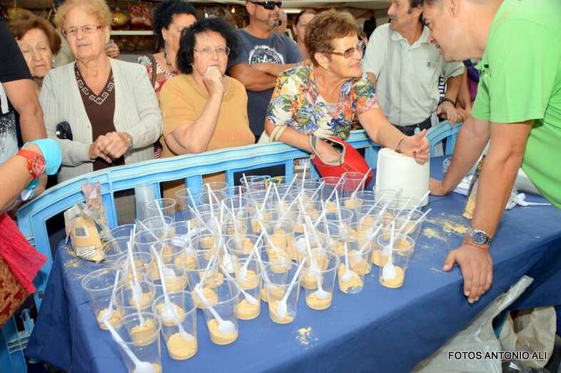 Muy cerca de allí, en la misma plaza de Los Llanos, casi a las puertas del templo y debajo de una caseta de color verde, muy pronto comenzaba José Antonio Montesinos, conocido popularmente como Tonono, a preparar el gran potaje canario que se repartiría a raciones, unas 400, poco después de las 14.00 horas al público asistente a las fiestas de San Gregorio, acompañado de gofio de Molino de Fuego. Delante de donde Tonono preparaba a fuego lento el guiso, hubo una demostración del juego del garrote tradicional y de lucha canaria.
