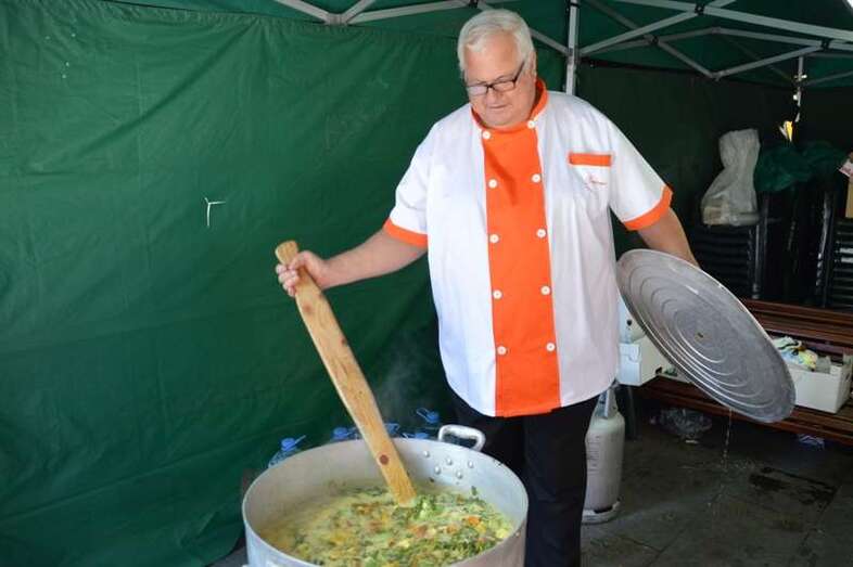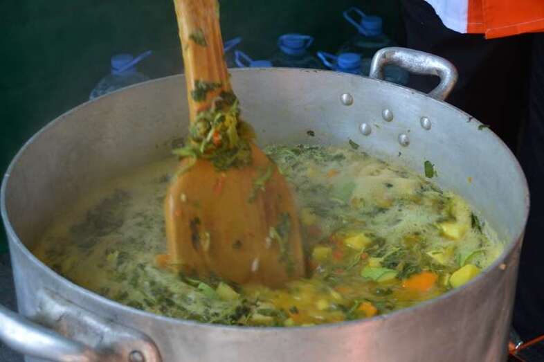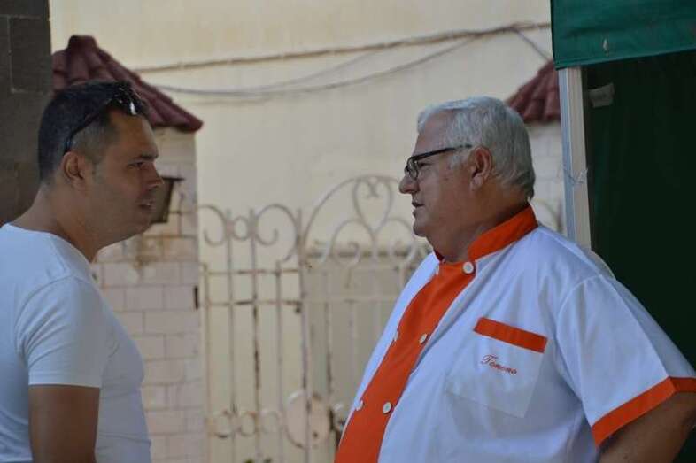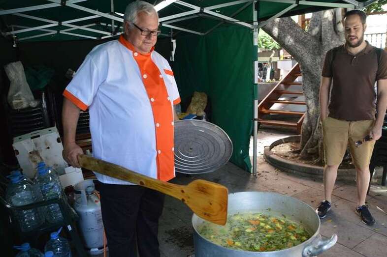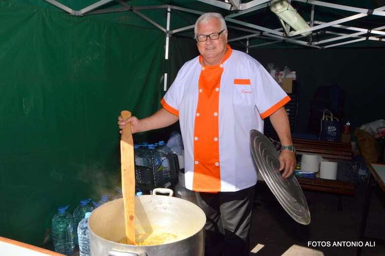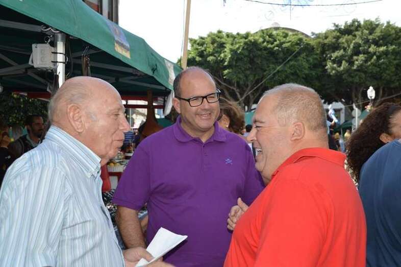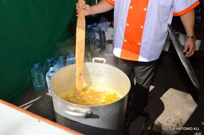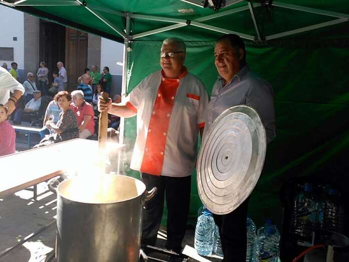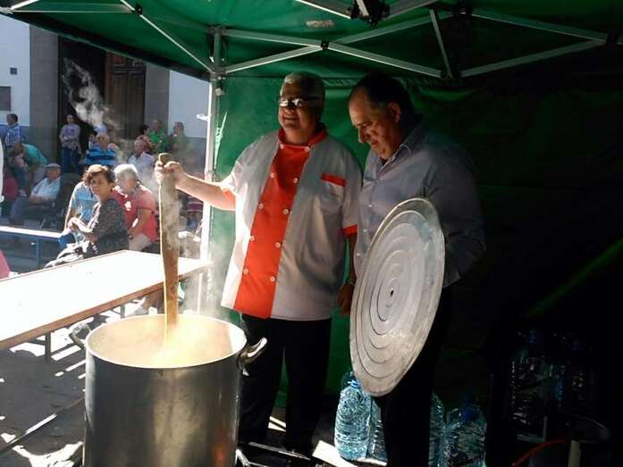 En la distribución del plato típico canario elaborado por José Antonio Montesinos, Tonono,  participaron la alcaldesa  Carmen Hernández, concejales del Ayuntamiento y empleados municipales.  La primera edila tuvo el detalle de colocarse en la cola con el concejal de Festejos, Juan Martel, para recibir sus raciones de potaje, tras contribuir a su reparto.
