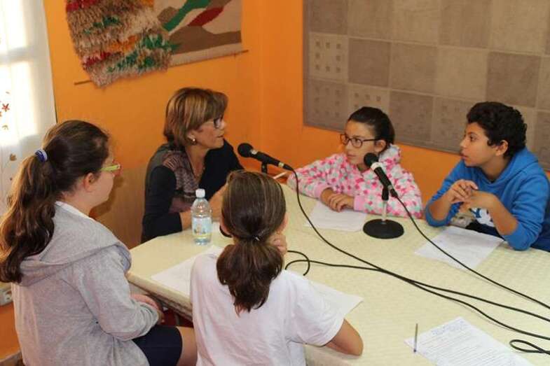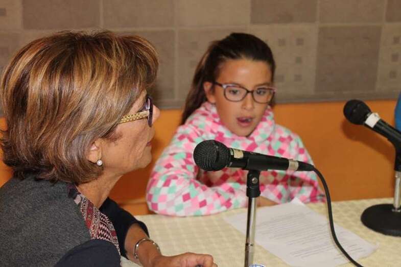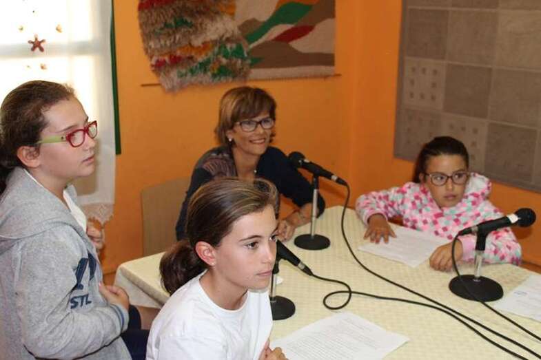 Los alumnos del CEIP Amelia Vega, en Ejido, entrevistan a la presidenta del Círculo Cultural en su emisora Radio Los Picos ● "Mi mejor experiencia como docente ha sido impulsar muchos proyectos de bibliotecas"