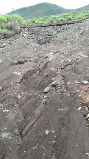 El camino, ya de por sí en mal estado por el constante tránsito de vehículos pesados, especialmente de camiones que transportan el picón de la cantera localizada en la zona eruptiva de Santidad, quedó totalmente impracticable tras las lluvias torrenciales de la penúltima semana de octubre. De hecho, según han señalado a TELDEACTUALIDAD, el acceso es “imposible” para vehículos que no sean 4x4, que también se ven con dificultades para sortear los trozos de carretera levantada, profundas zanjas y rocas.