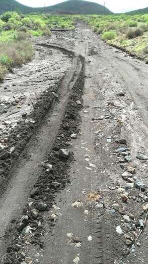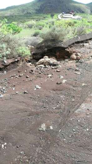 Telde.- No ha vuelto a llover con intensidad en Telde, pero las casi 20 familias que habitan o tienen propiedades en el sector de Rosiana continúan sufriendo un mes después los destrozos que la tromba de agua provocó en el camino de acceso, tanto en su tramo asfaltado como en el trecho de material volcánico, tal y como avanzó TELDEACTUALIDAD. Hoy un grupo de vecinos se reunió con el concejal de Vías y Obras, Alejandro Ramos, que se comprometió a enviar el lunes un tractor para mejorar lo que se pueda la vía y retomar el proyecto de 2012 para su adecentamiento integral.