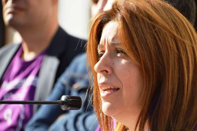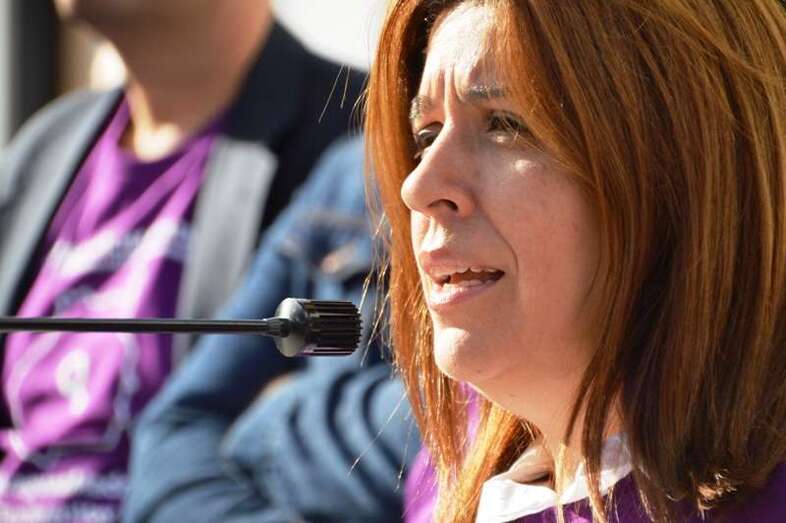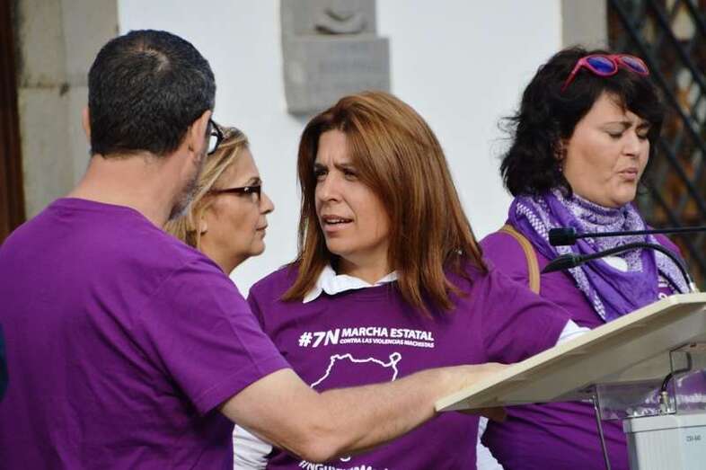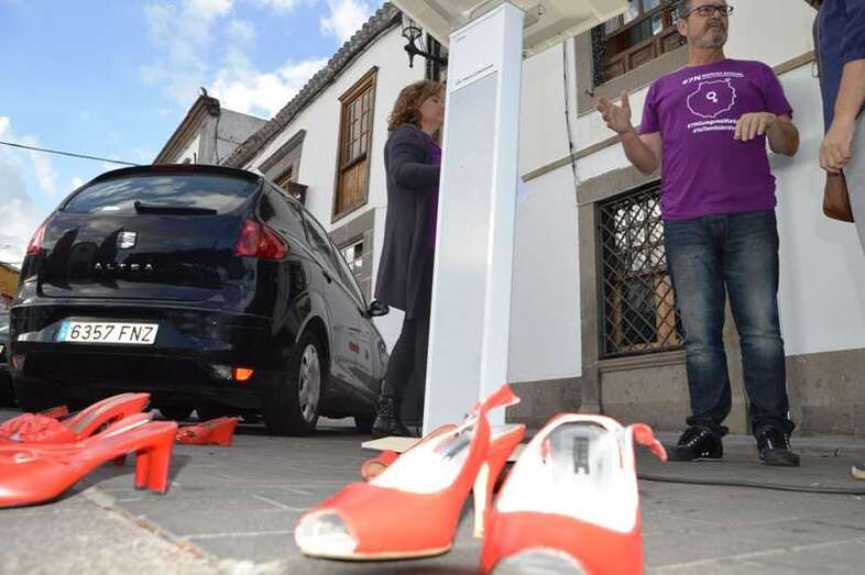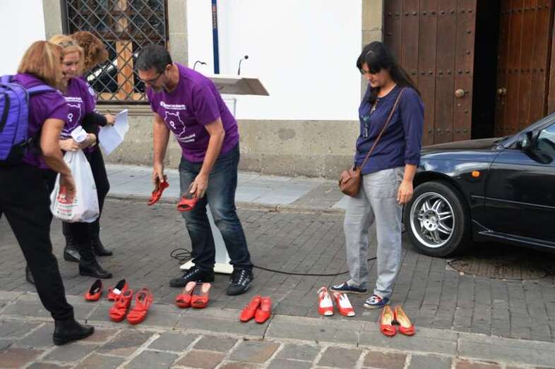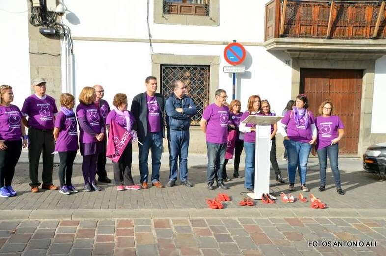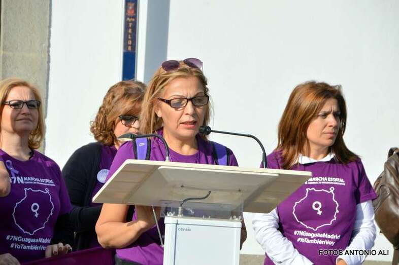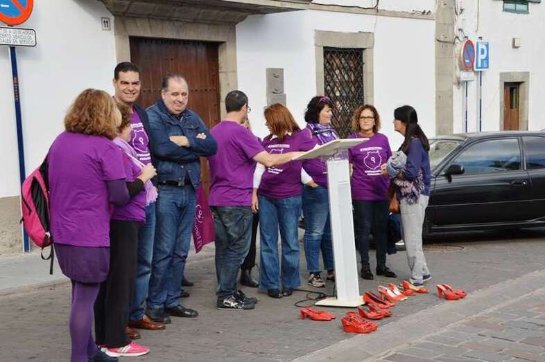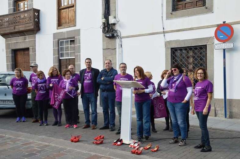 Con la presencia de casi un centenar de personas,  Hernández dese un atril colocado delante de las Oficinas Municipales, con varios pares de zapatos rojos delante,  dio la bienvenida a la caravana de la ruta Sur que inició su marcha en Valsequillo con el coche del colectivo teldense Frida Khalo como cabecera. La primera edila animó a las mujeres y a la sociedad en general a proseguir la lucha contra la violencia machista.