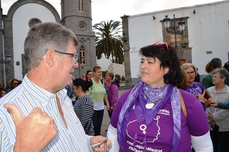 La alcaldesa Carmen Hernández y el concejal de Igualdad, Gregorio Viera, así como varios miembros del equipo de Gobierno,  quisieron sumarse a esta iniciativa de la red feminista de Gran Canaria que recorrerá este sábado la Isla con varias rutas que han partido de diferentes puntos con el fin de visibilizar  la lucha contra la violencia de género.