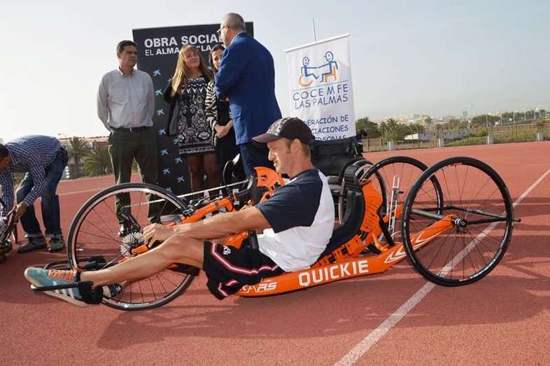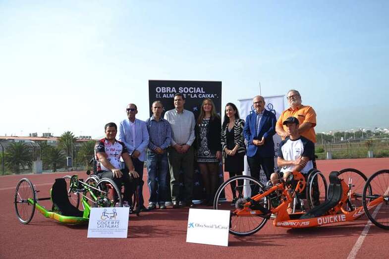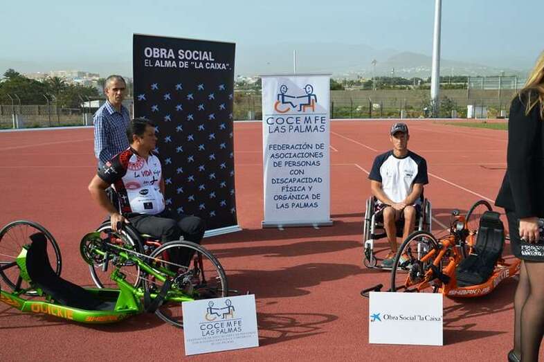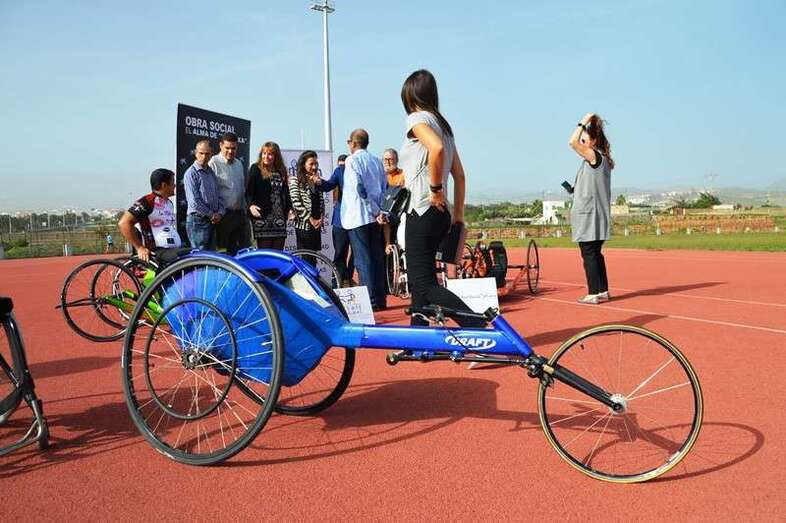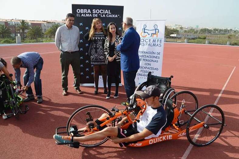 Telde.- El colectivo de personas con discapacidad cuenta desde hoy con una excusa menos para no practicar deporte. La obra social de La Caixa ha decidido donar 13 sillas especiales de ruedas o handbikes para la práctica de distintas disciplinas (atletismo y ciclismo, fundamentalmente) en el gremio. Diez de estos artilugios, de tipología estándar, rotarán por los colegios de Telde para concienciar a los más pequeños sobre los riesgos de los accidentes acuáticos. El acto de la donación tuvo lugar en las pistas de atletismo de El Hornillo.