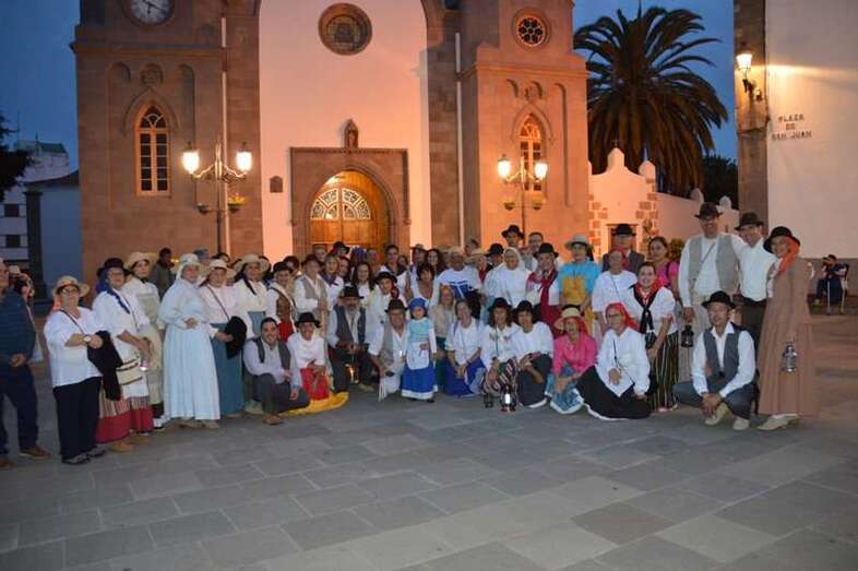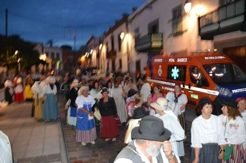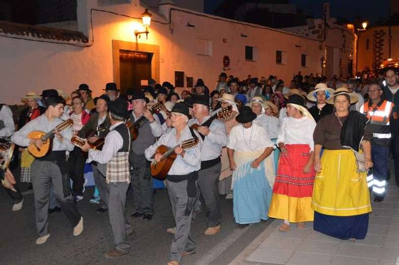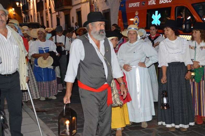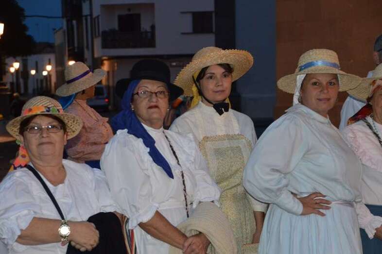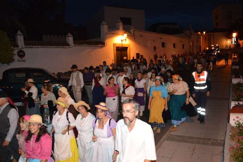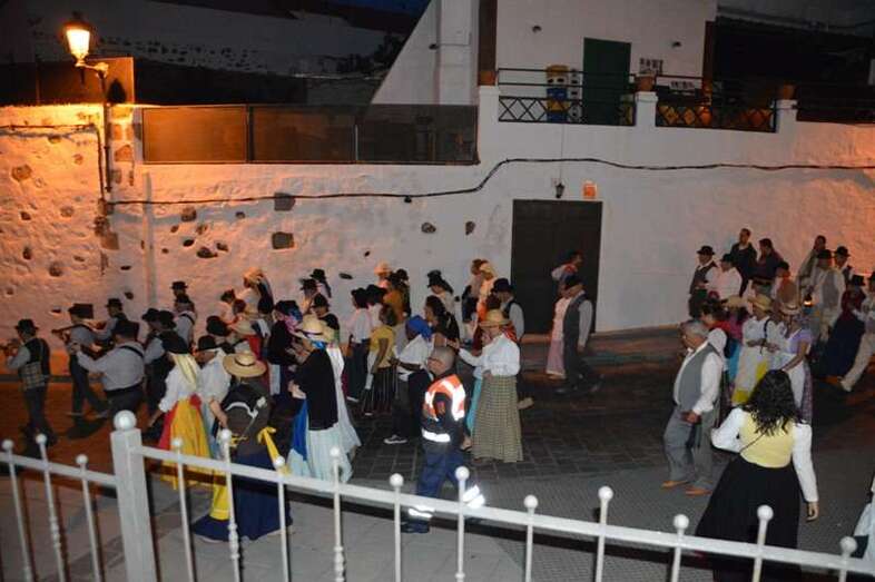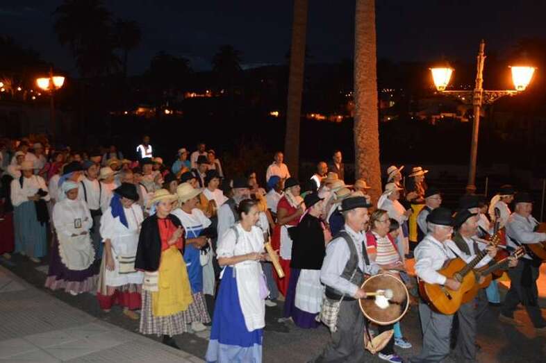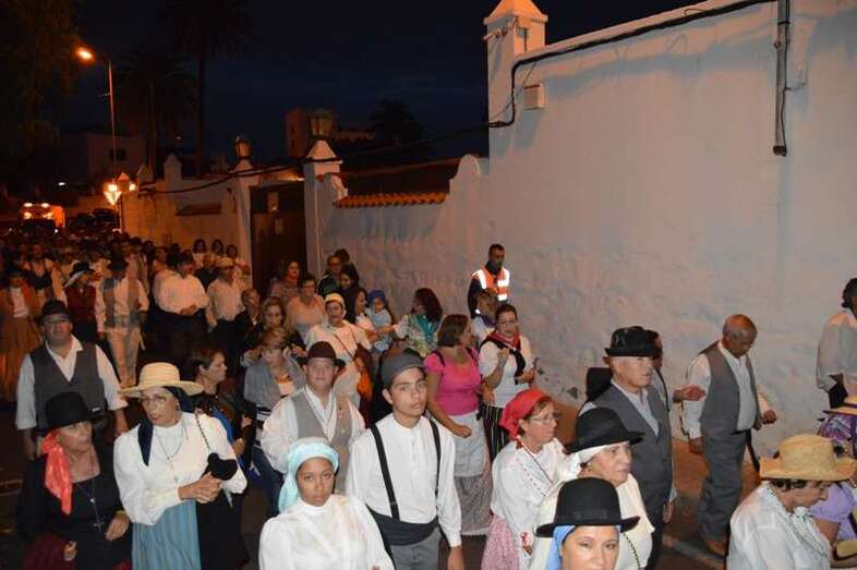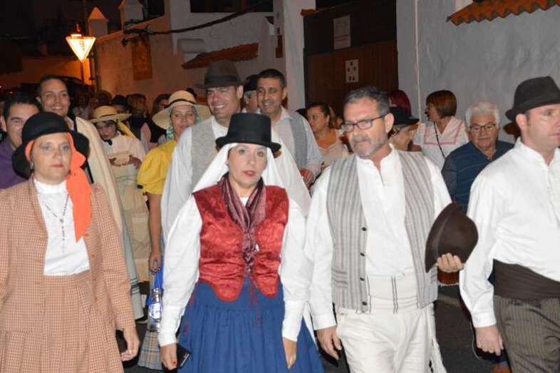 Acompañados de la luz de faroles y tras concentrarse en el recinto público del núcleo fundacional de la ciudad, los peregrinos ataviados con trajes típicos canarios iniciaron al ritmo de la canción Somos costeros interpretada por la Parranda del Vino, cuyos componentes encabezaban la comitiva conformada por vecinos, conocidas caras del movimiento ciudadano y autoridades, entre las que se encontraban la alcaldesa Carmen Hernández y los ediles Gregorio Viera, Diego Ojeda, Marta Hernández y Eloy Santana, todos ellos del Gobierno municipal.