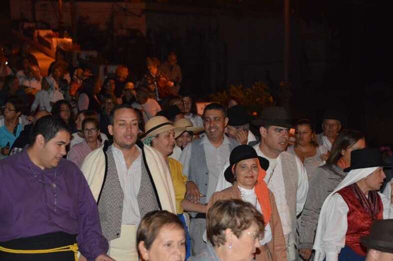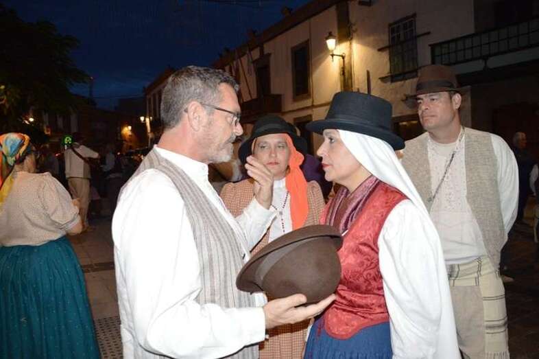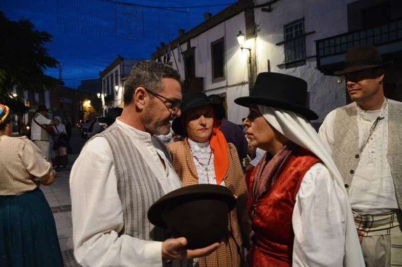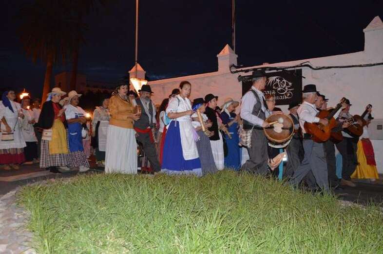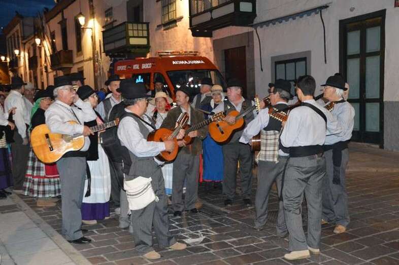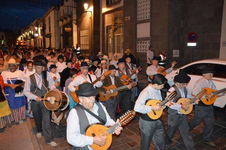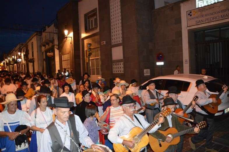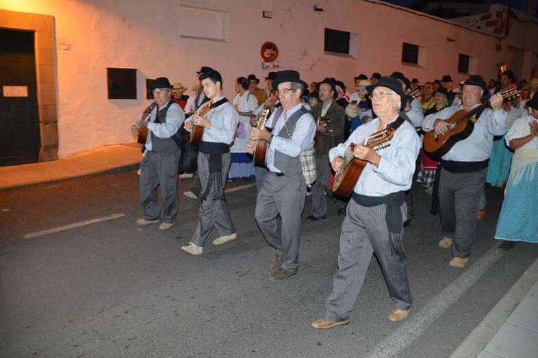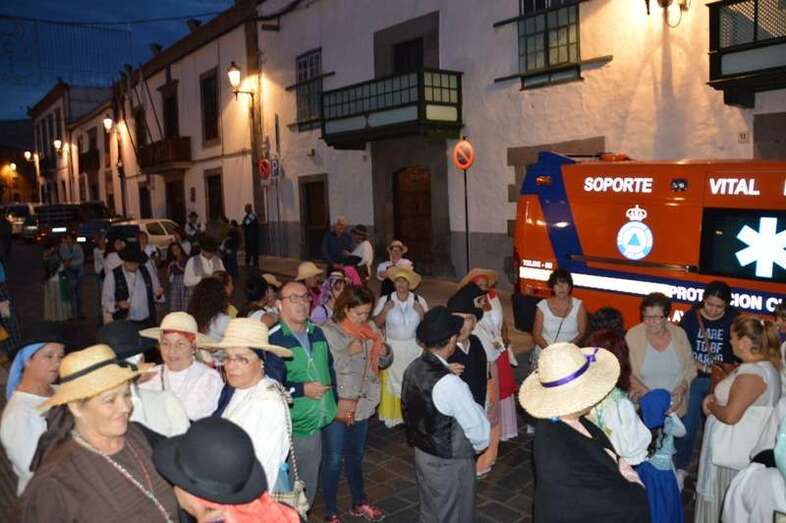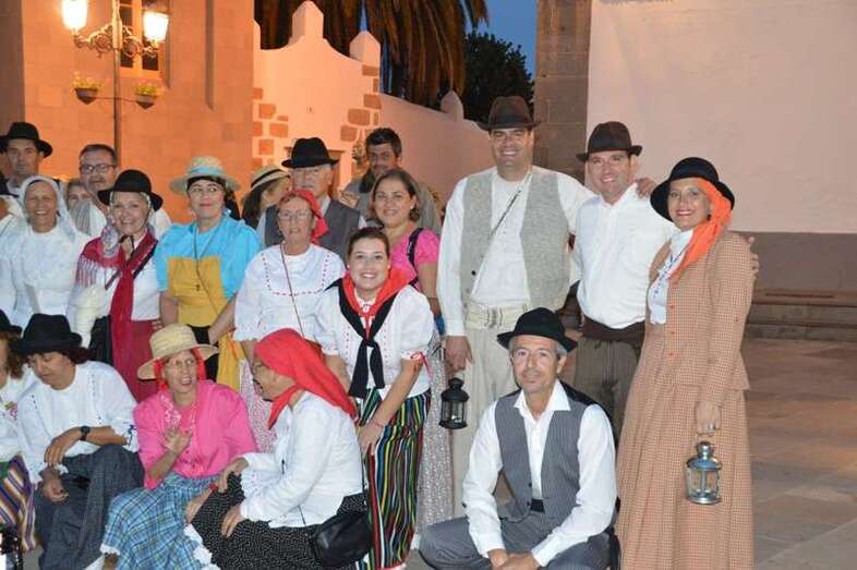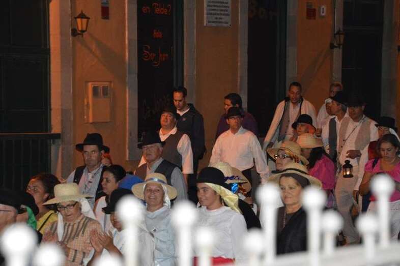 Acompañados de la luz de faroles y tras concentrarse en el recinto público del núcleo fundacional de la ciudad, los peregrinos ataviados con trajes típicos canarios iniciaron al ritmo de la canción Somos costeros interpretada por la Parranda del Vino, cuyos componentes encabezaban la comitiva conformada por vecinos, conocidas caras del movimiento ciudadano y autoridades, entre las que se encontraban la alcaldesa Carmen Hernández y los ediles Gregorio Viera, Diego Ojeda, Marta Hernández y Eloy Santana, todos ellos del Gobierno municipal.