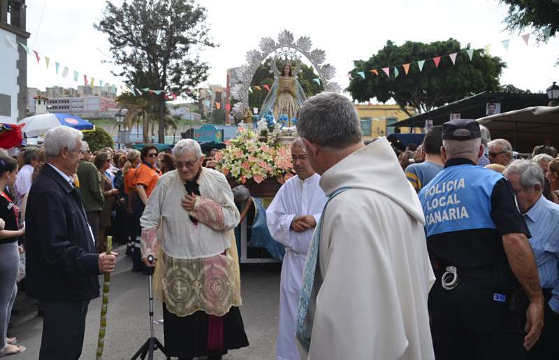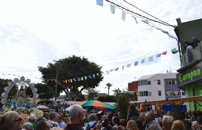 Y en esta ocasión incluso se notó una mayor afluencia de público con respeto a ediciones anteriores. El buen tiempo, algo nublado pero que poco a poco se fue despejando para dar paso a los rayos del sol, ayudó sin duda a que más de 7.000 personas de todas las edades se reunieran en torno a la iglesia de Jinámar y de sus calles aledañas para ver salir a la Virgen de La Concepción.