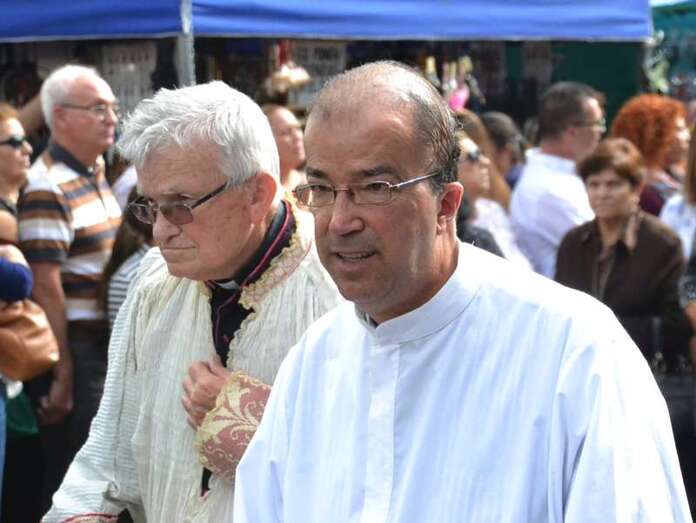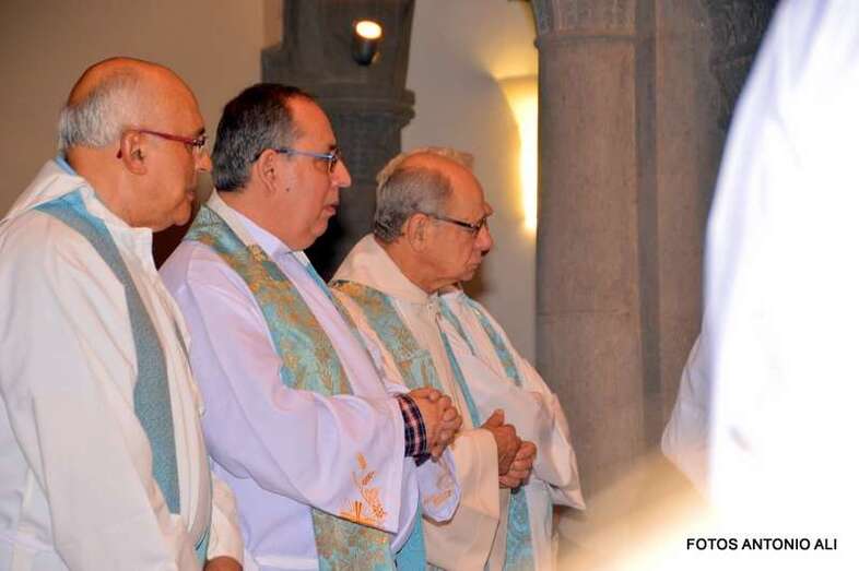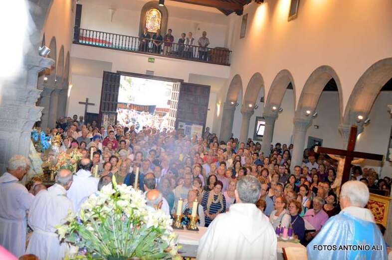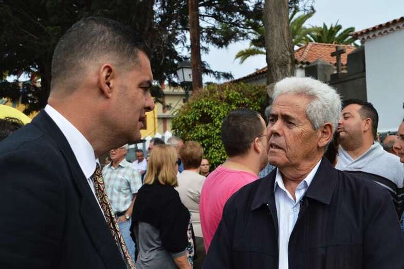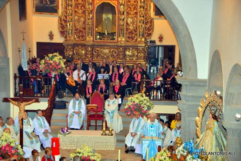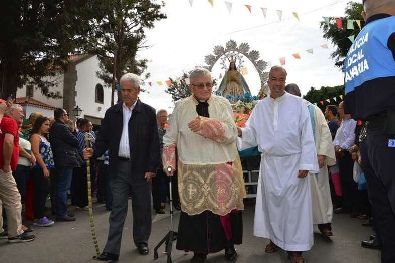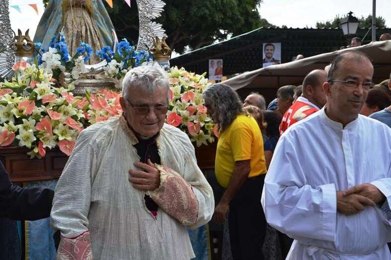 Una amplia representación de autoridades municipales, encabezada por la alcaldesa Carmen Hernández y por otros ediles tanto del grupo de Gobierno como de la oposición, arroparon a la comitiva, en la que también participaron miembros del Patronato de Fiestas que dirige el joven Anatael Santana y más de diez sacerdotes, entre ellos el vicario general de la Diócesis de Canarias, Hipólito Cabrera, que fue precisamente el encargado de oficiar la misa previa.