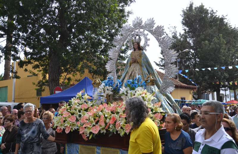 Telde.- El casco de Jinámar vive hoy el día grande de sus fiestas en honor a la Caña Dulce y a La Concepción. Miles de personas, más de 7.000 según las fuentes oficiales, se congregaron este mediodía para asistir a la procesión de la imagen mariana por las calles del pueblo. Una amplia representación del clero y de autoridades municipales participaron en la comitiva.