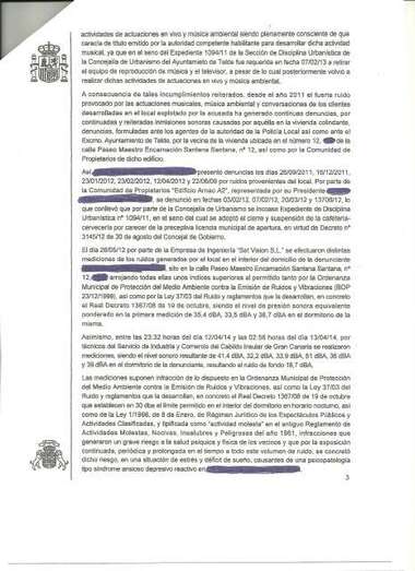 En la sentencia se detalla como hechos probados que la acusada hizo caso omiso a los avisos del Ayuntamiento para que pusiera fin a dichas actividades, circunstancia que motivó que fuera denunciada en varias ocasiones por la demandante y comunicad de propietarios del edificio donde estaba el local. Dio pie asimismo a que la Concejalía de Urbanismo le abriera expediente de Disciplina Urbanística y decretase el cierra de la cafetería-cervecería por carecer de la preceptiva licencia municipal de apertura.