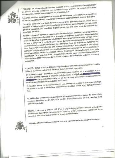 Por todo ello, el fallo no puede ser más ejemplarizante. Se le condena a la clausura definitiva del local (se comprometió a cerrarlo en el plazo de 24 horas en la misma vista oral) y a la pena de dos de prisión (que no cumplirá al no tener antecedentes penales) con inhabilitación especial para el derecho de sufragio pasivo durante este periodo.