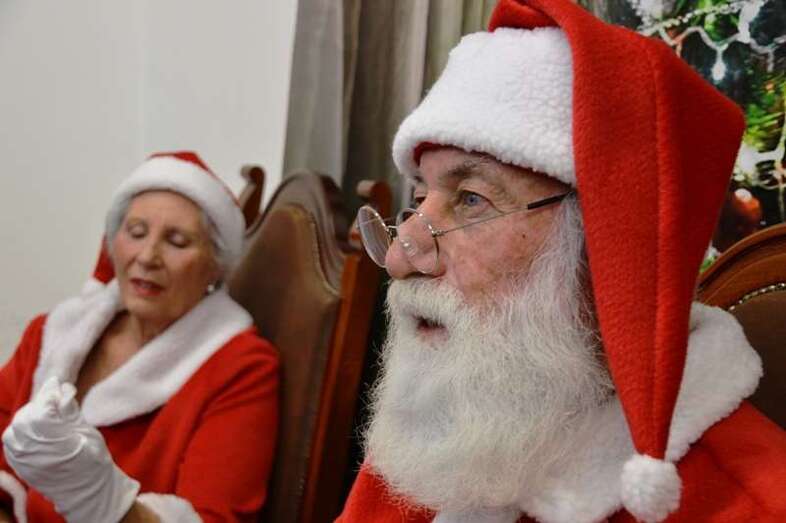Políticos y programa lúdico al margen, los dos de los protagonistas de la rueda de prensa fueron los figurantes que hacen de Papá Noel y Mamá Noel en estos actos. Llevan 16 años desempeñando ese rol, y en el caso de Telde este será el tercer año consecutivo en el que contagien de ilusión a la chiquillería con su jeito.