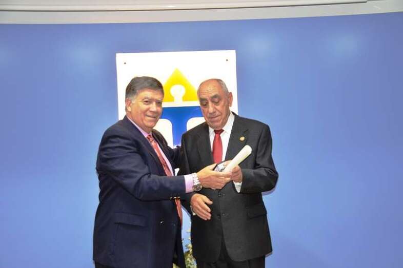 El COAAT entregó también la insignia a Gonzalo Santana, técnico de Patrimonio Histórico del Cabildo de Gran Canaria por sus 40 años como aparejador. Santana fue miembro de la Comisión Local de Defensa del Patrimonio Histórico de Telde en calidad de representante de la Institución insular.
