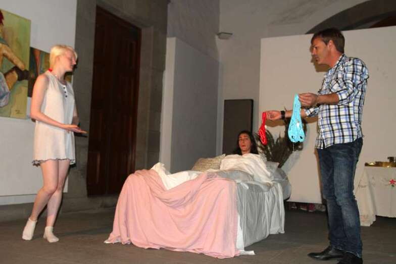 Con la miradas puestas en la obra tan magnificamente escenificada por los componentes del cuadro de actores, metidos en su papel y dirigidos detenidamente en cada movimiento escénico, ambiente, decorados, luminosidad, textos, de los actores del Grupo de Teatro Platea Central y con las otras miradas de la Exposición Retratos y Abstractos de la artista teldense Makita Alonso Benítez, una magnífica muestra pictórica de la obra de esta artista que se exhibe hasta el próximo 30 de diciembre.