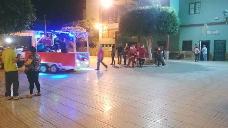 Telde.- Papá Noel en su largo recorrido por Telde hizo anoche un alto en el camino en el núcleo poblacional de Casas Nuevas-Valderrama, en el Cruce de Melenara, para recoger las peticiones de los niños del lugar y repartir alegría e ilusión entre ellos. TA ofrece imágenes.