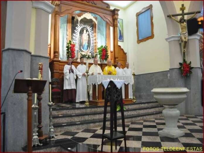 Telde.- El obispo de la Diócesis de Canarias, Francisco Cases, presidió este sábado la eucaristía que se celebró en la Parroquia de las Nieves, en el núcleo teldense de Lomo Magullo, con motivo del centenario de la llegada al barrio de la imagen de la Alcaldesa Perpetúa de Telde. TA ofrece imágenes y video.