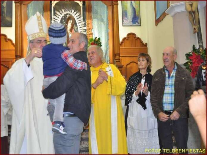La misa, oficiada por el obispo y el párroco Fernando Santana Báez, conocido por el Padre Báez, estuvo animada por la música aportada por una parranda juvenil de la zona.