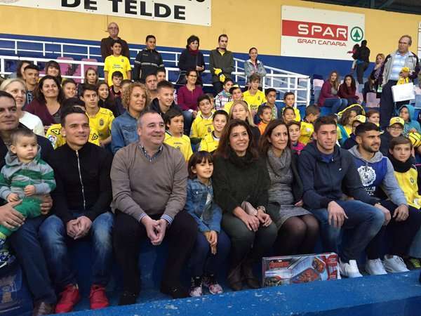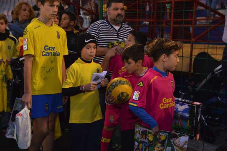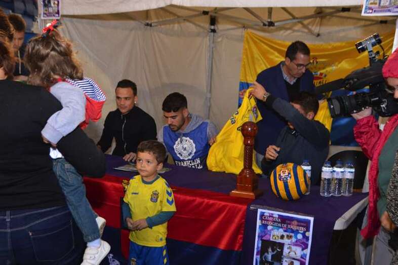Telde.- La Unión Deportiva Las Palmas volvió un año más a cumplir con la campaña solidaria de recogida de juguetes y regalos del Ayuntamiento de Telde. Si bien estas Navidades ha sido imposible celebrar el tradicional partido de fútbol por las exigencias de la Primera División, tres jugadores canteranos de la primera plantilla - el teldense Roque Mesa, el portero Raúl Lizoain y el centrocampista Tana- participaron en una firma benéfica en El Hornillo. Además, el club amarillo donó 1.000 euros a la causa.
