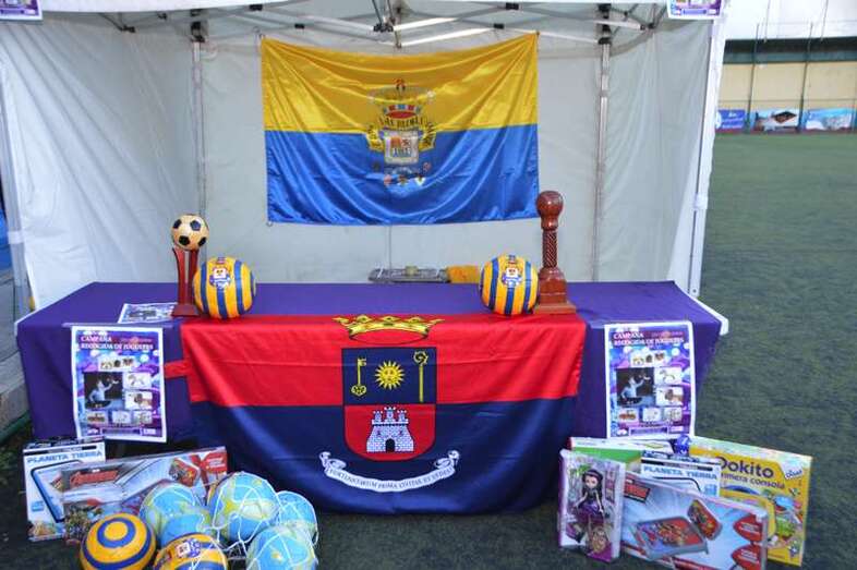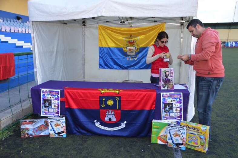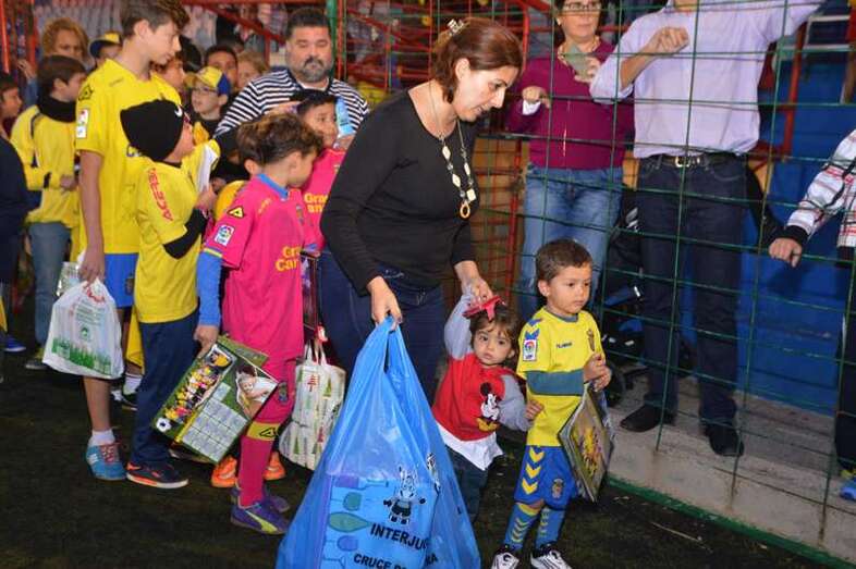 La UD Las Palmas, que por motivos de calendario no ha podido disputar este año en Telde el tradicional partido benéfico, entregó 4 balones y 4 camisetas a la Concejalía de Servicios Sociales del Ayuntamiento de Telde. Objetos que serán sorteados en una rifa benéfica para recaudar más fondos de cara a la campaña municipal de recogida de juguetes y regalos.