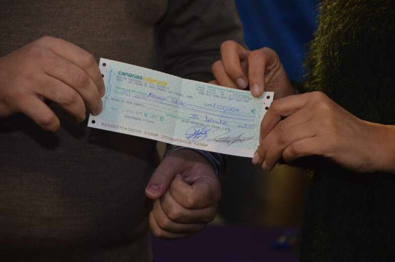 Además, el presidente del club, Miguel Ángel Ramírez, no quiso perderse el evento y entregó en persona a la alcaldesa de Telde un cheque donación por valor de 1.000 euros.
