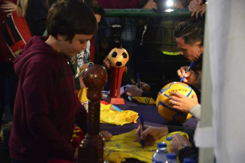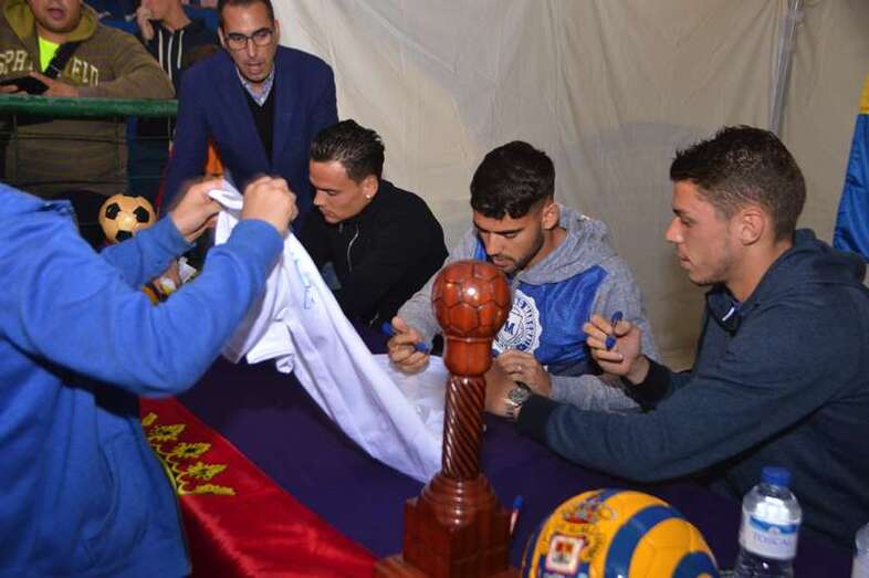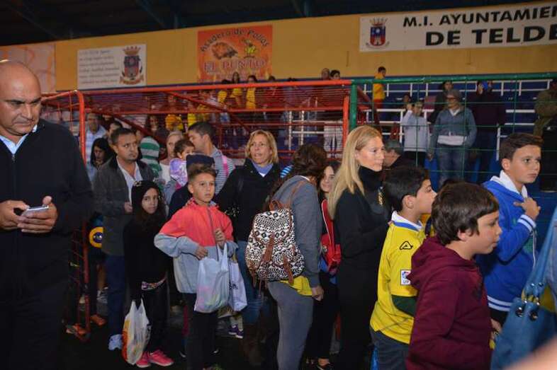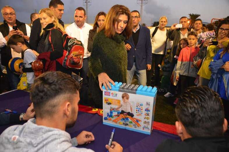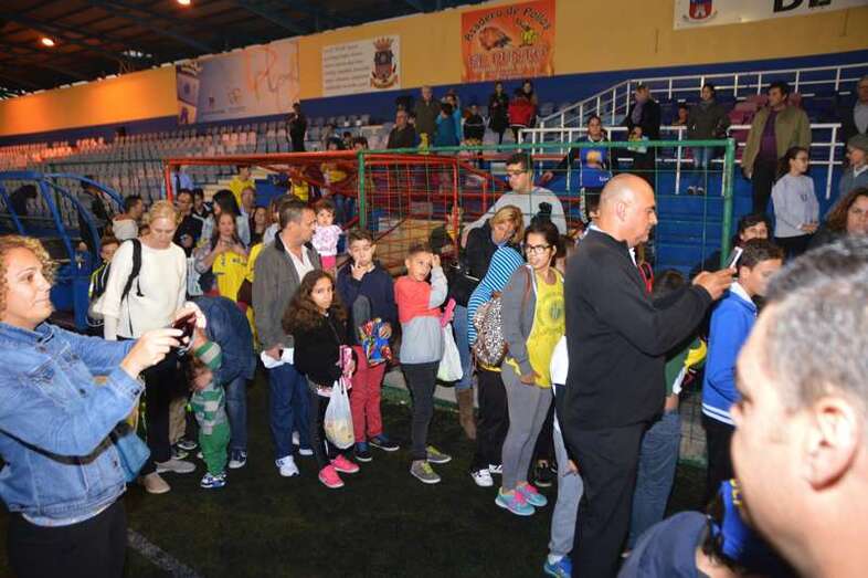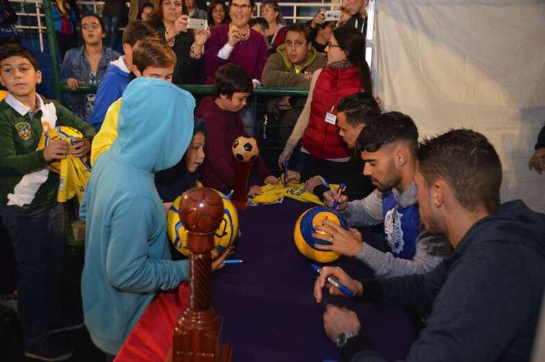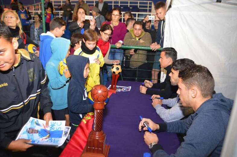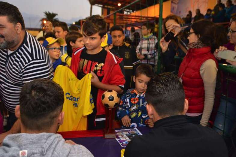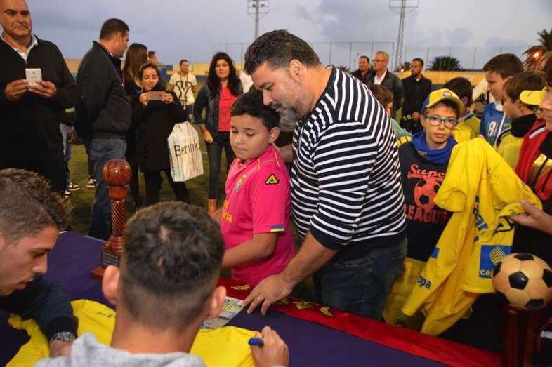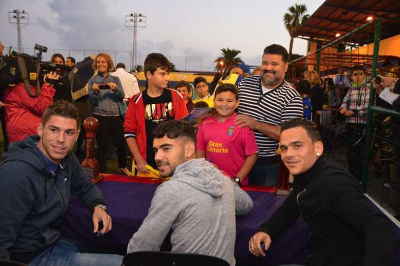 Los tres futbolistas hicieron las delicias de los pequeños y no tan pequeños de Telde. Decenas de fans se dieron cita desde las 18.00 horas en el estadio municipal Pablo Morales de El Hornillo, en donde se pudieron retratar juntos a sus ídolos amarillos y llevarse un autógrafo de regalo.