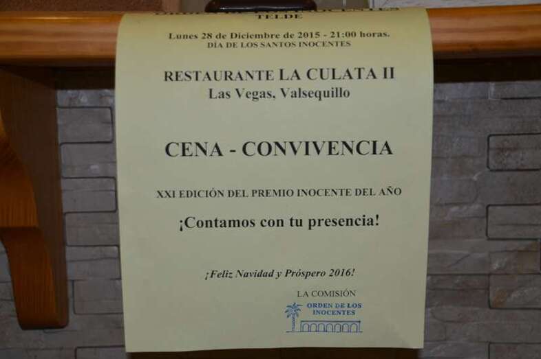 ¡Buenas noches!, miembros de la Orden de los Inocentes y demás asistentes, deseo que amigos todos.Dice nuestro filósofo Carlos Díaz: "Uno puede defenderse bien de los ataques infundados, pero contra los elogios está indefenso". Pues eso me pasa aquí y ahora. Porque Navidad y vanidad tienen las mismas letras pero en orden diferente, espero que mi ingreso no traiga desorden.Ya decía El Predicador en Eclesiastés 1.2 : " Vanitas vanitatum et omnia vanitas” - que en lengua más cristianada quiere decir: Vanidad de vanidades, todos es vanidad. ¡Es uno Inocente del 2015!, bueno eso quiere decir que por lo menos no soy culpable, ¡sí!, no soy culpable de cumplir con todos esos elogios y buenas palabras.¡En fin !, embargado por la emoción, embargo que prefiero al de Hacienda, decirles que el año de 1956, es para uno año de las independencias por excelencia, verán.En orden de menor a mayor antigüedad, su excelencia el generalísimo, dio la independencia a Marruecos en abril (en la parte proporcional del Protectorado Español, pues en marzo la había dado Francia). En marzo, logré la independencia corpórea de mi Excelente Madre: ¡Nací! En febrero una persistente lluvia trae tal campanazo, que henchida de gozo y agua, una ladera del pago de Rosiana, Santa Lucía, pretende independizarse moviendo casas y saltando la clave del puente tendido sobre el barranco, con música de cañonazo. Y de la lluvia quiero contarles una leyenda de la Tribu Masai:Las enseñanzas del Dios de la LluviaUn día, hace muchos años, el elefante dijo al Dios de la Lluvia: Debe usted estar muy satisfecho, porque se las arregló para cubrir toda la tierra de verde; ¿pero qué pasaría si arranco toda la hierba, todos los árboles y arbustos? No quedará nada verde. ¿Qué haría Ud. en ese caso?El Dios de la Lluvia le contestó: Si dejara de enviar la lluvia, no crecerían más plantas y no tendrías nada para comer. ¿Qué sucedería entonces? Pero el elefante quería desafiarlo y comenzó a arrancar todos los árboles, los arbustos y la hierba con su trompa, para destruir todo lo verde de la tierra.Así pues, el Dios de la Lluvia, ofendido, hizo que cesara la lluvia y los desiertos se extendieron por todas partes. El elefante se moría de sed; intento cavar por donde antes pasaban los ríos, pero no pudo encontrar una gota de agua.Al final alabó al Dios de la Lluvia: Señor, me he portado mal. Fui arrogante y me arrepiento. Por favor, olvídelo y deje que vuelva la lluvia. Pero el Dios de la Lluvia continuaba en silencio.Pasaban los días y cada día era mas seco que el anterior. El elefante envió al gallo en su lugar para que alabara al Dios de la Lluvia. El gallo lo buscó por todas partes, al final lo encontró escondido en una nube. Le dijo quién era y lo alabó por la lluvia con tanta elocuencia que el Dios de la Lluvia decidió enviar un poco de lluvia.La lluvia cayó tal como el Dios de la Lluvia le había prometido al gallo y se formó un pequeño charco cerca de donde vivía el elefante. Ese día, el elefante fue al bosque a comer y dejó a la tortuga encargada de proteger el charco con estas palabras :Tortuga, si alguien viene aquí a beber, les dirás que éste es mi charco personal y que nadie puede beber de aquí. Cuando el elefante se fue, muchos animales sedientos vinieron al charco, pero la tortuga no les dejó beber diciendo : Este agua pertenece a su majestad el elefante;¡no pueden beberla!Pero cuando llegó el león, no le impresionaron las palabras de la tortuga. La miró, le dijo que se fuera y bebió agua hasta calmar su sed. Se fue sin decir más palabras. Cuando el elefante volvió quedaba muy poco agua en el charco. La tortuga intentó defenderse: Señor, soy apenas un animalito y los otros animales no me respetan. Vino el león, y yo me aparté. ¿ Qué podía hacer ? Después de eso, todos los animales bebieron libremente.El elefante, furioso, levantó la pata sobre la tortuga con la intención de aplastarla. Afortunadamente, la tortuga es muy fuerte y pudo arreglárselas para sobrevivir. Pero desde entonces la tortuga tiene su parte inferior plana. De pronto todos los animales oyeron la voz del Dios de la Lluvia que les decía: No hagan como el elefante. No desafíen a los más fuertes, no destruyan lo que puedan necesitar en el futuro, no pidan a los débiles que defiendan su propiedad y no castiguen al criado inocente. Pero, sobre todo, no sean arrogantes y n o intenten apropiarse de todo; permitan que los necesitados compartan su fortuna.