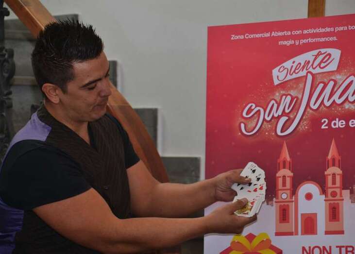 Hernández desveló que esta acción de dinamización contará con dos platos fuertes: un circuito itinerante de magia callejera a cargo de 5 especialistas y el concierto de Non Trubada. Todo ello aderezado con las muestras y degustaciones que ofrecerán en la misma plaza los negocios Juan Jamón y Vinoteca de San Juan.