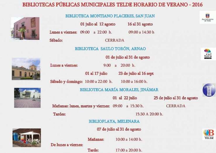 Telde.- TA ofrece el horario y días de aperturas de las Bibliotecas Municipales y de la BiblioPlaya de Melenara durante los meses de verano.