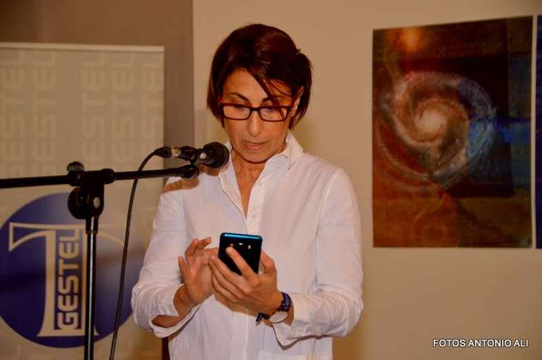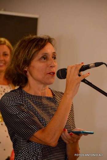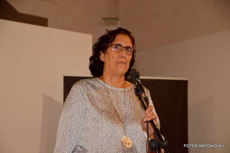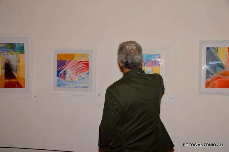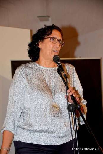 La pintora en la exposición inaugurada anoche en Telde (Foto TA) La pintora en la exposición inaugurada anoche en Telde (Foto TA)
