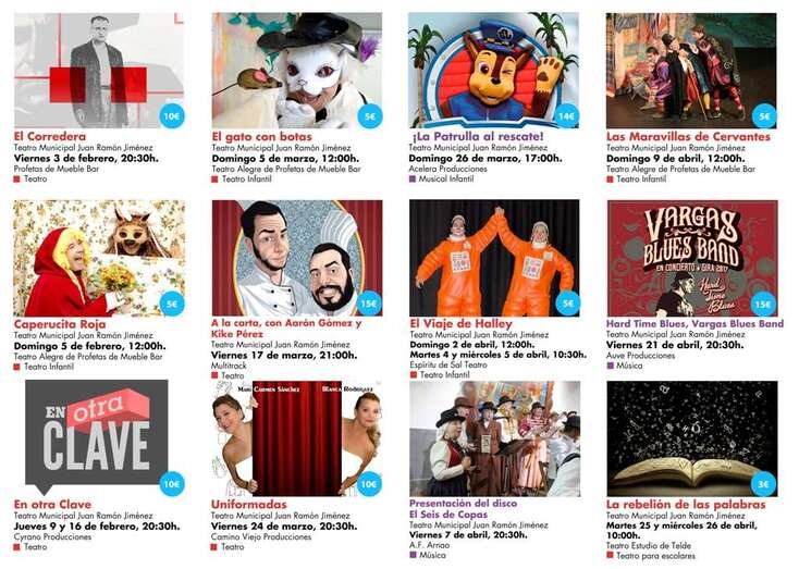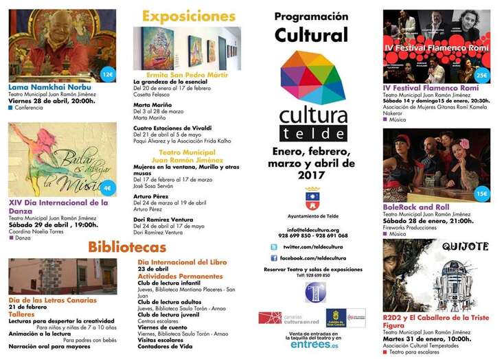 Telde.- Arranca el 2017 y la Concejalía de Cultural del Ayuntamiento de Telde ya tiene lista la programación para el primer cuatrimestre del año. Un variado calendario de espectáculos que hoy se dio a conocer en una rueda de prensa en el Teatro Juan Ramón Jiménez.