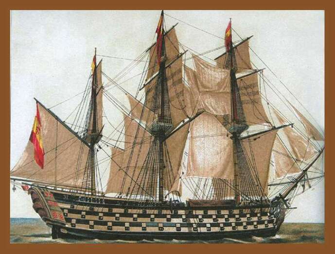 En la Armada Española del siglo XVIII los navíos se clasificaban en tres clases, según su número de cañones: entre los 100 como mínimo que debía portar uno de primera clase y los 60 que armaba uno de tercera. El navío de línea con más cañones jamás construido fue el español Santísima Trinidad, armado con 136 cañones y 4 morteros, que fue botado en 1769 en La Habana (Cuba), y se hundió al sur de Cádiz, tras su captura en la batalla de Trafalgar (1805).