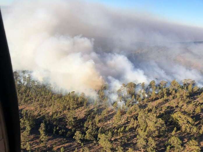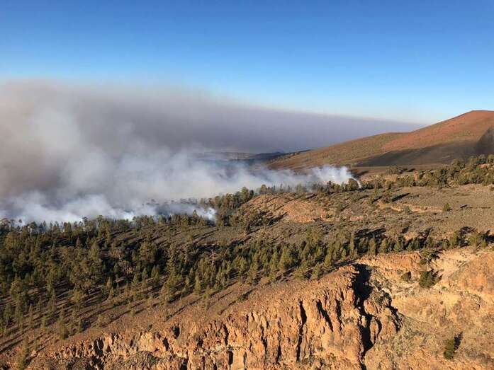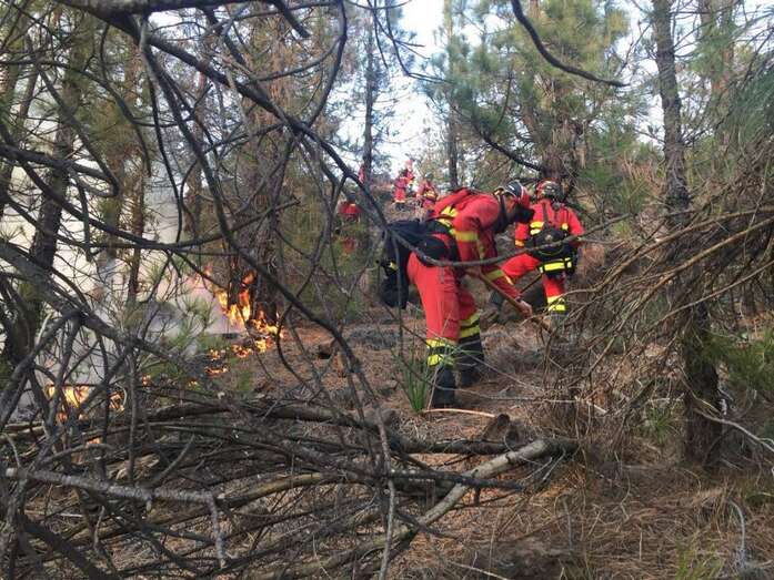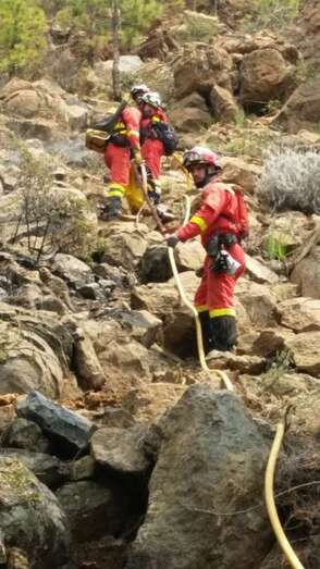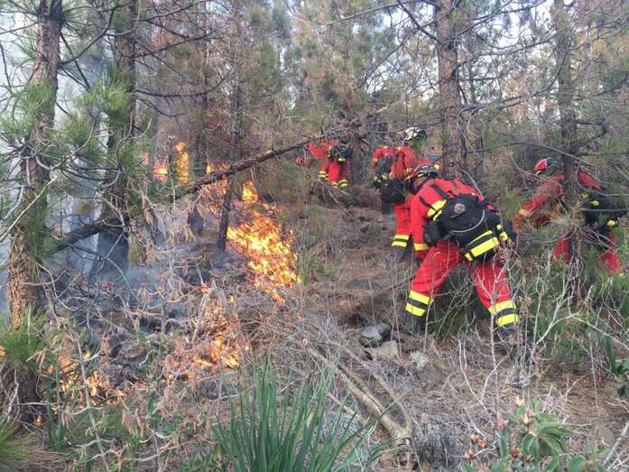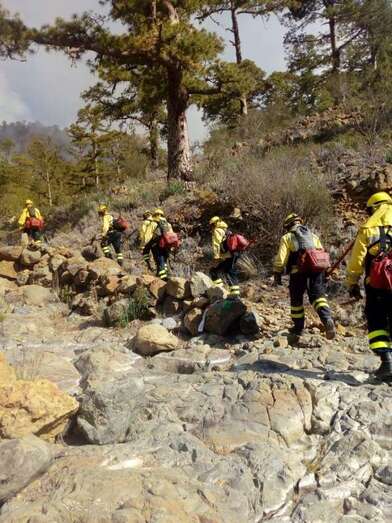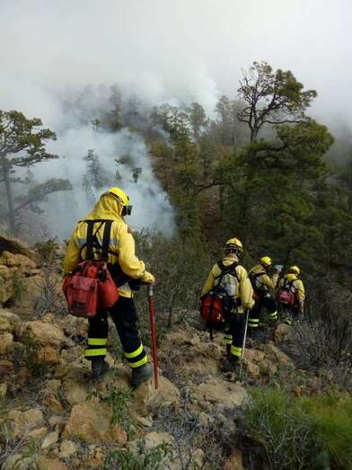 El equipo de extinción remitido desde Gran Canaria, compuesto por un técnico especialista, un agente, un operador de comunicaciones del Centro de Coordinación Operativa Insular (Cecopin) y una brigada Presa reforzada hasta ocho componentes, ancló el fuego cerca de las Cañadas, informa el Cabildo grancanario en un comunicado.