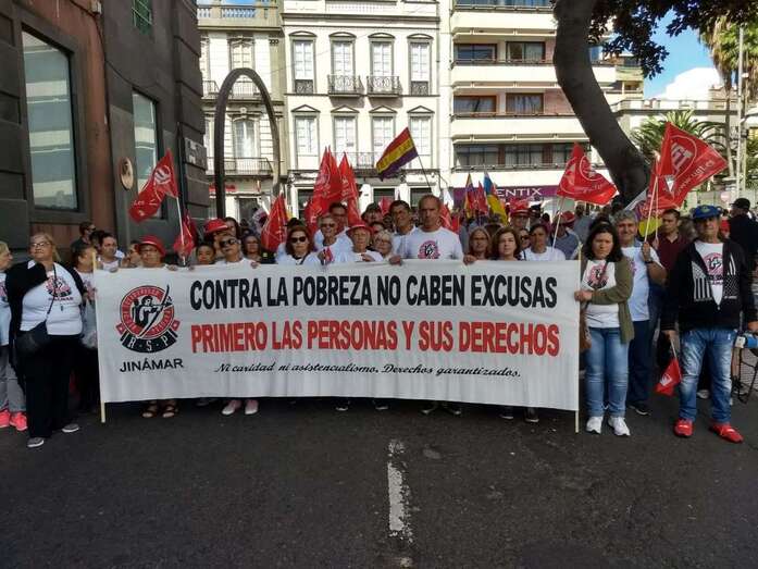 En la celebrada en la capital grancanaria, decenas de teldenses participaron en la protesta, entre ellos, políticos vinculados a partidos de izquierdas, sindicalistas y miembros de la Red de Solidaridad Popular de Jinámar.