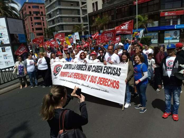 La manifestación arrancó pasadas las 11.00 horas en la plaza Weyler de Santa Cruz de Tenerife, donde acudieron unas 2.000 personas, con la pancarta “Unidad sindical por los derechos laborales 1 de mayo y pensiones dignas 1 de mayo”, firmada por CCOO, UGT, CSIF, IC, USO y Sindicalistas de Base.