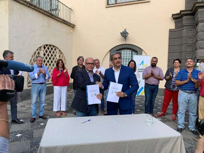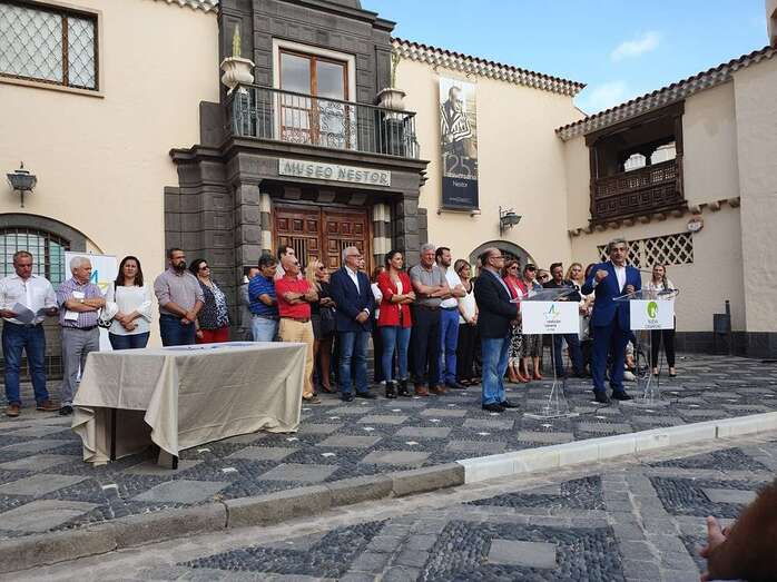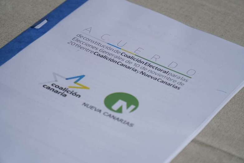 Ambos dirigentes firmaron ante un nutrido grupo de simpatizantes de ambas formaciones políticas el acuerdo que da cuerpo a esta coalición electoral y el manifiesto que, en más de 70 puntos, recoge el programa electoral que asumen como compromiso ante la ciudadanía. Entre los asistentes se encontraban cargos y militantes destacados de NC y CC de Telde, como la vicealcaldesa y presidenta local de Nueva Canarias, Carmen Hernández, y el actual alcalde de la ciudad, Héctor Suárez, así como el que fuera vicepresidente del Ejecutivo regional y diputado regional, el también teldense Pablo Rodríguez.