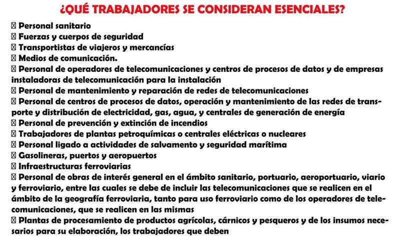 Relación de actividades esenciales durante el estado de alarma